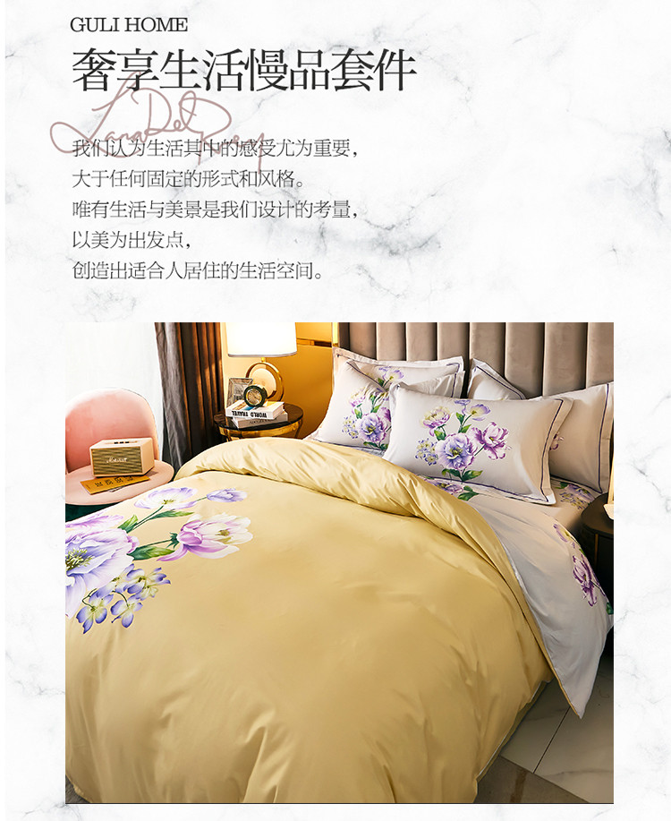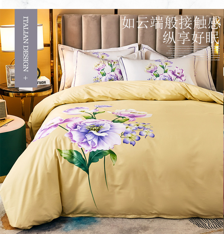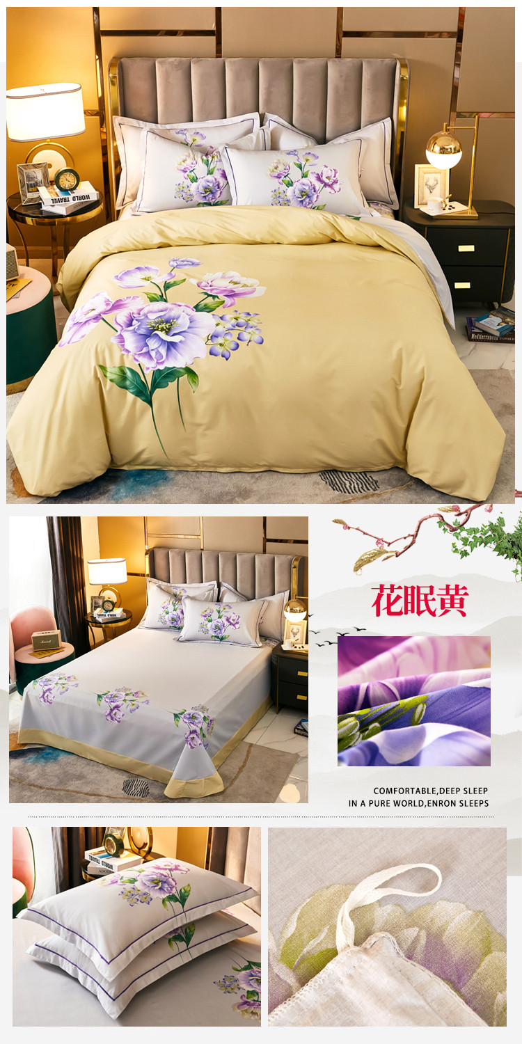 雲归梦 2021全棉大版四件套中国风花卉花眠黄