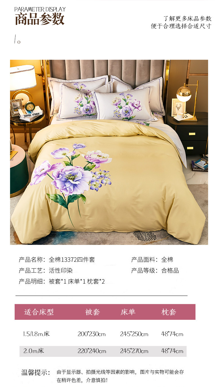 商品名称:雲归梦 2021全棉大版四件套中国风花卉花眠黄