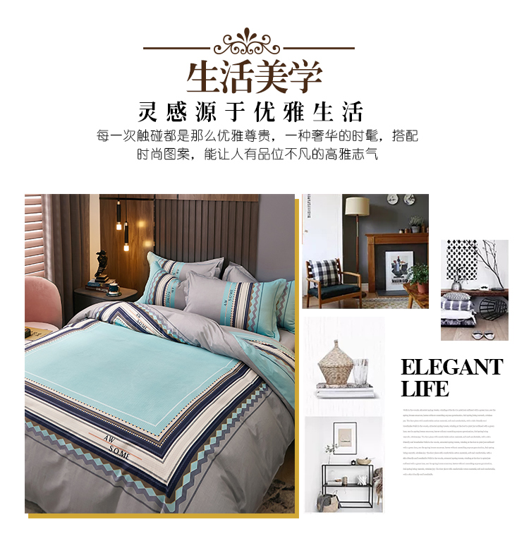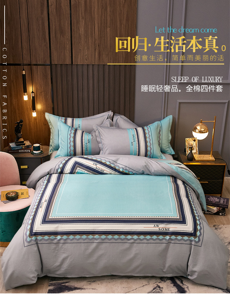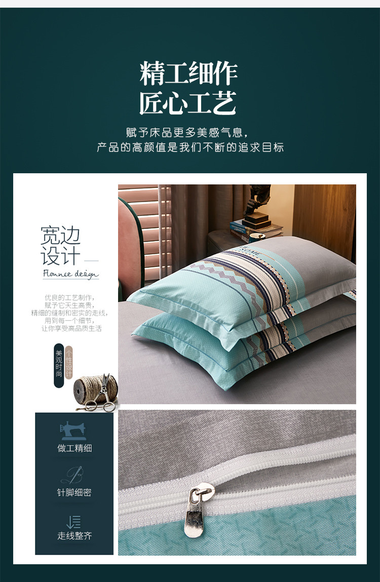商品名称:雲归梦 2021全棉大版四件套休闲格条系列 天长地久