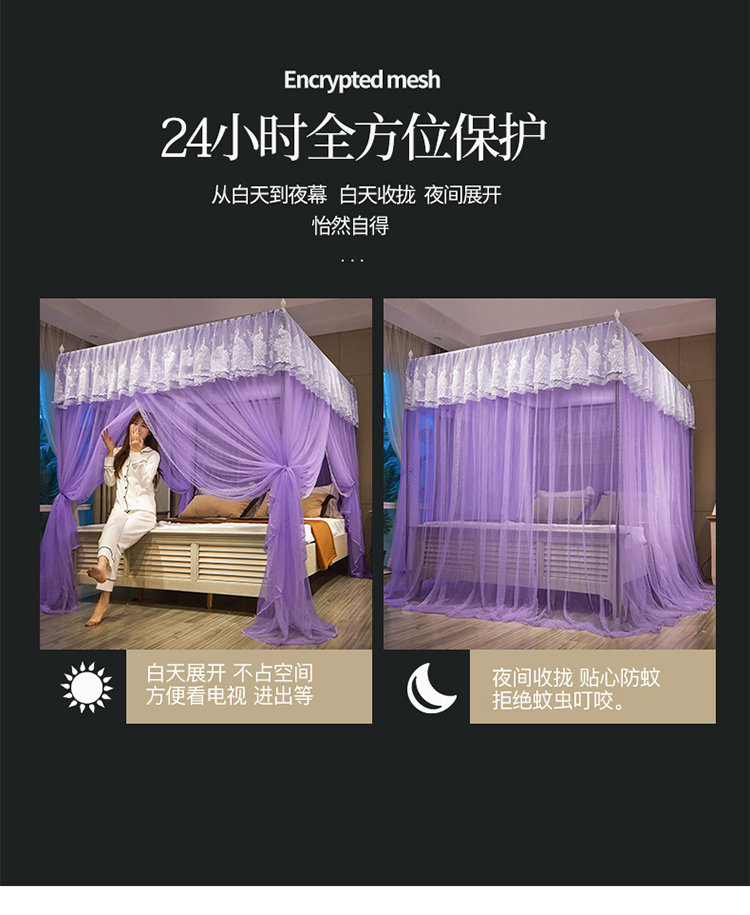 当前位置: 91家纺网 > 商品网购 > 床上用品 > 蚊帐 > 宫廷蚊帐 > 舞夜盛世2025新三开门加密落地宫廷蚊帐加厚螺纹接头支架 紫色