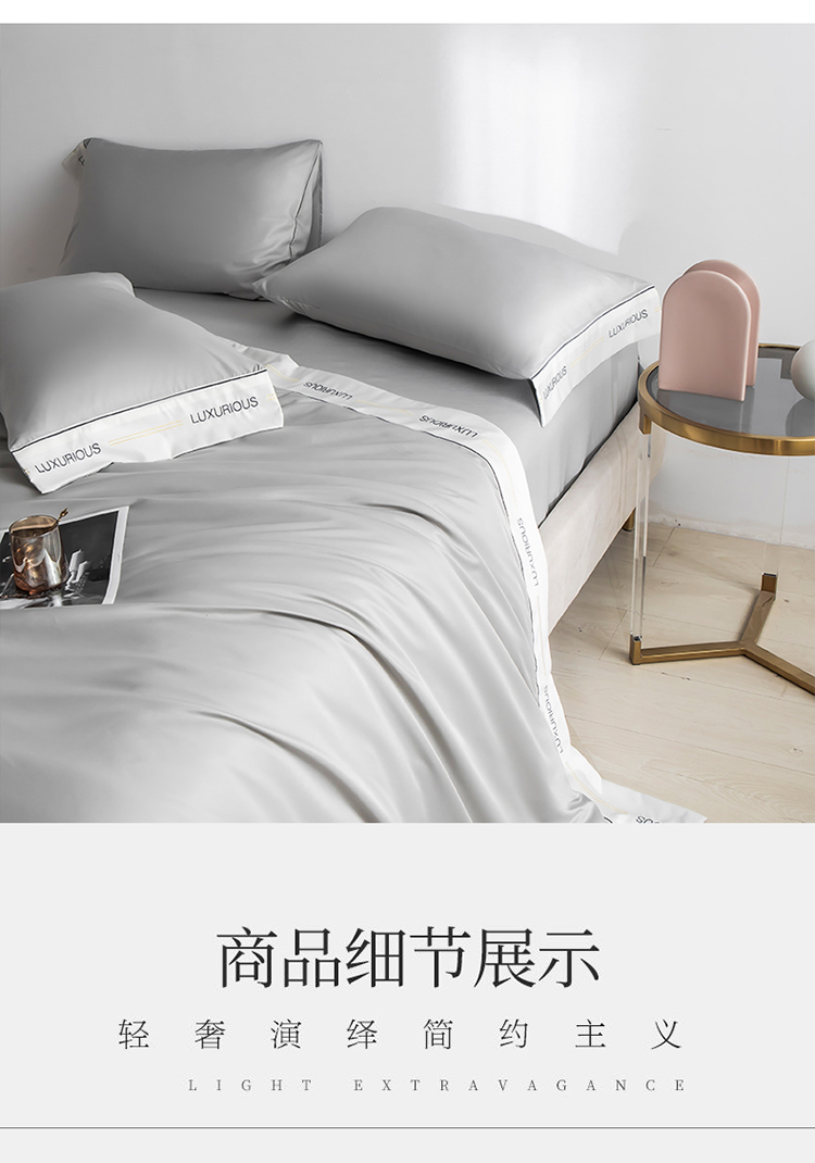 商品名称:米奈 2024新款水洗真丝贴边绣花四件套有质检报告奈利 银灰
