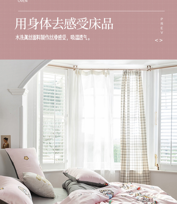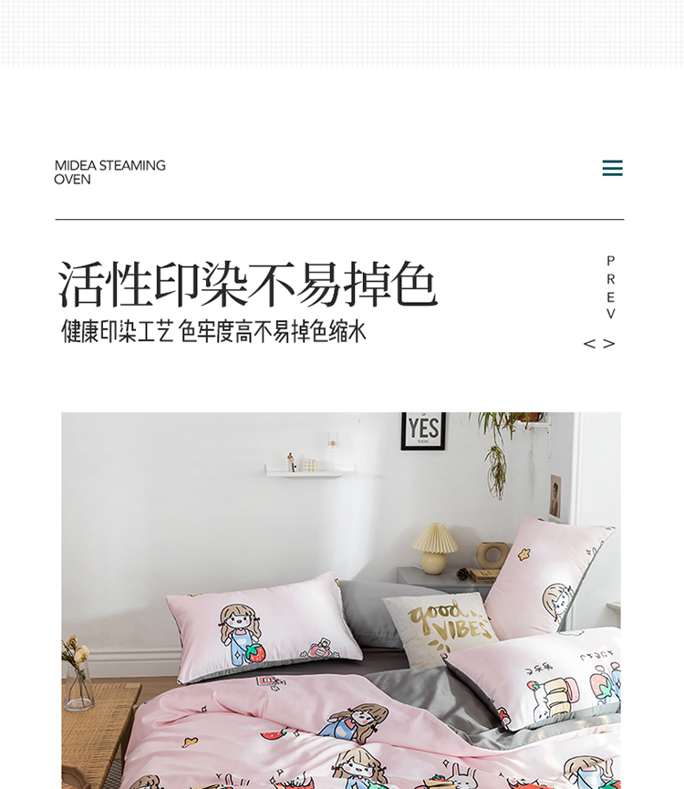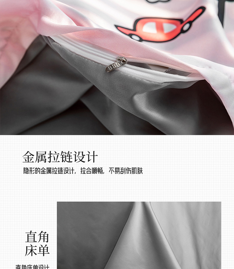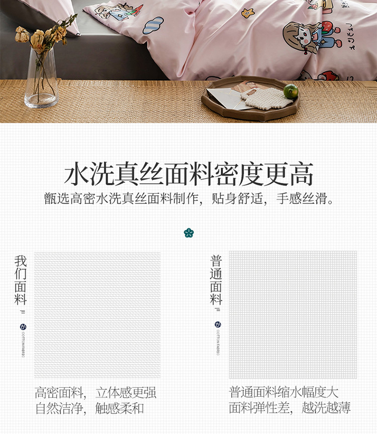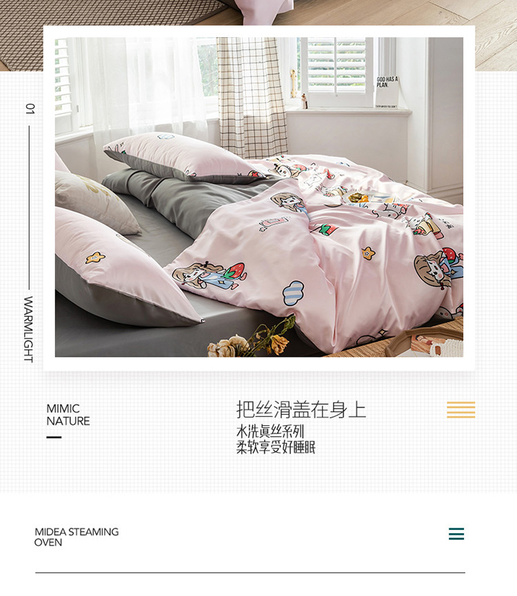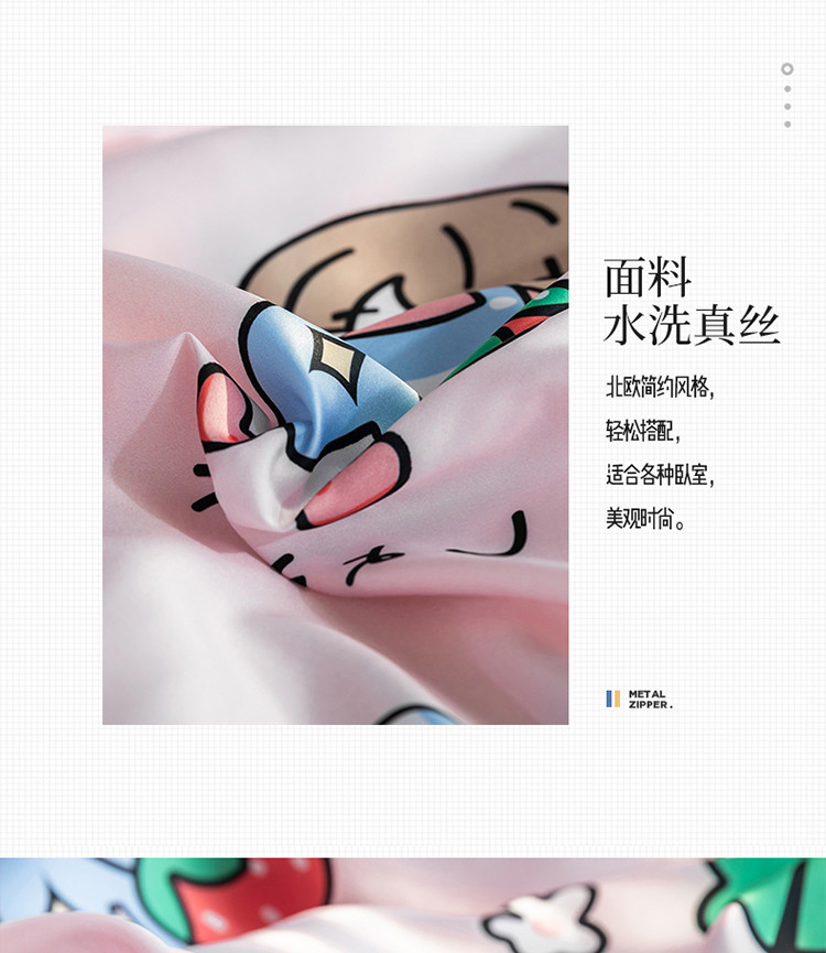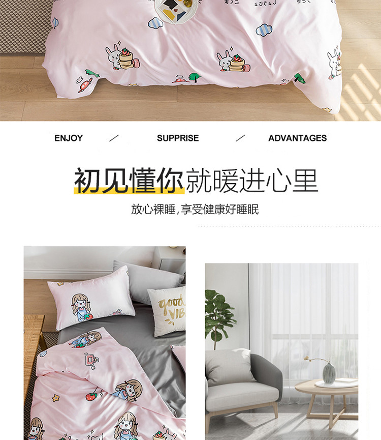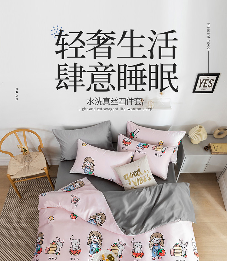 琪格格纺织 2022新款水洗真丝印花四件套 草莓女孩