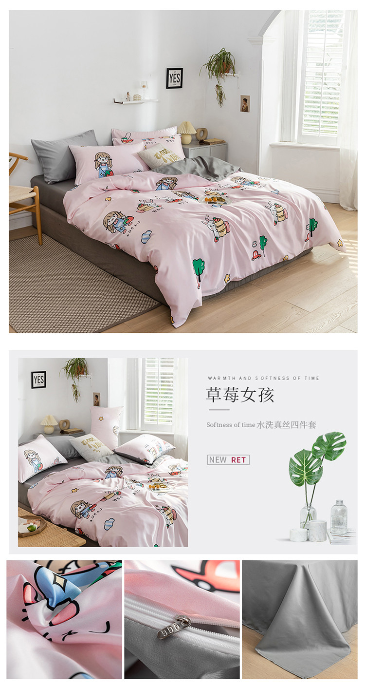 商品名称:琪格格纺织 2022新款水洗真丝印花四件套 草莓女孩