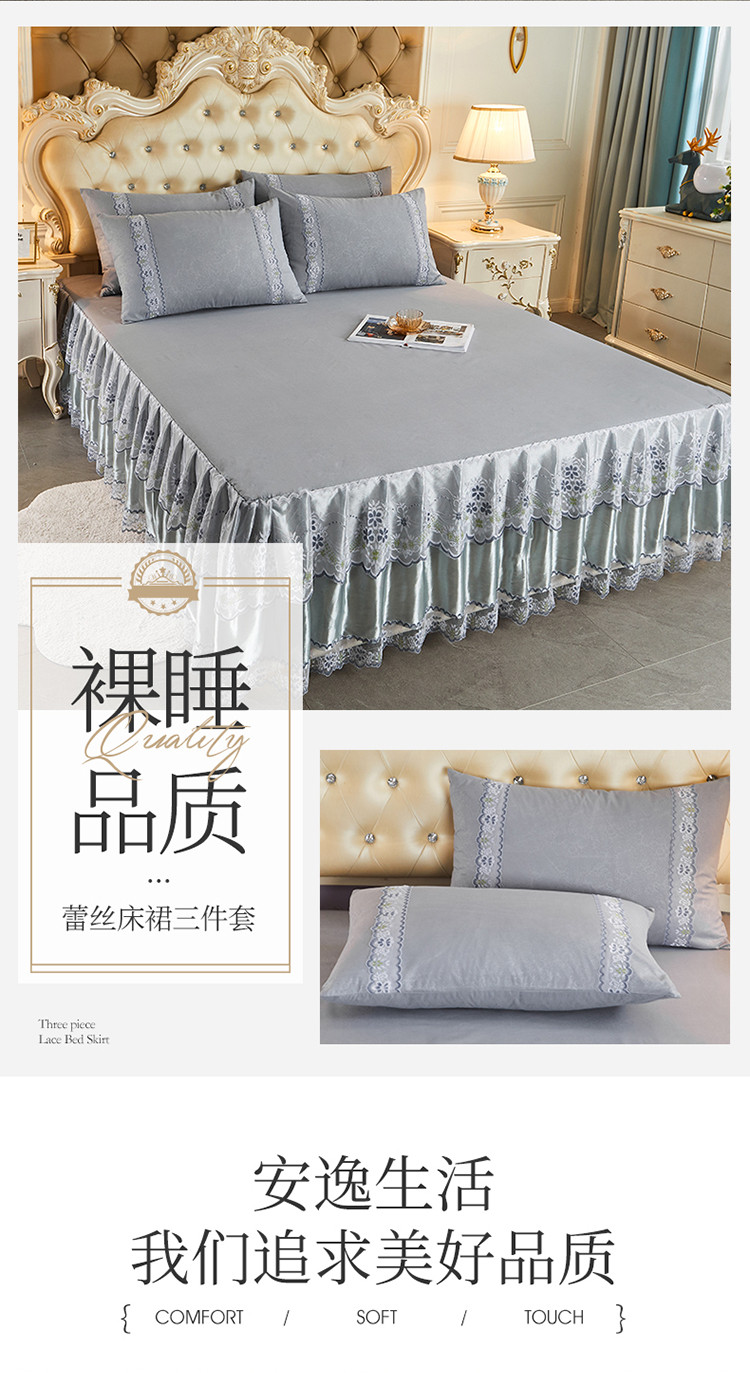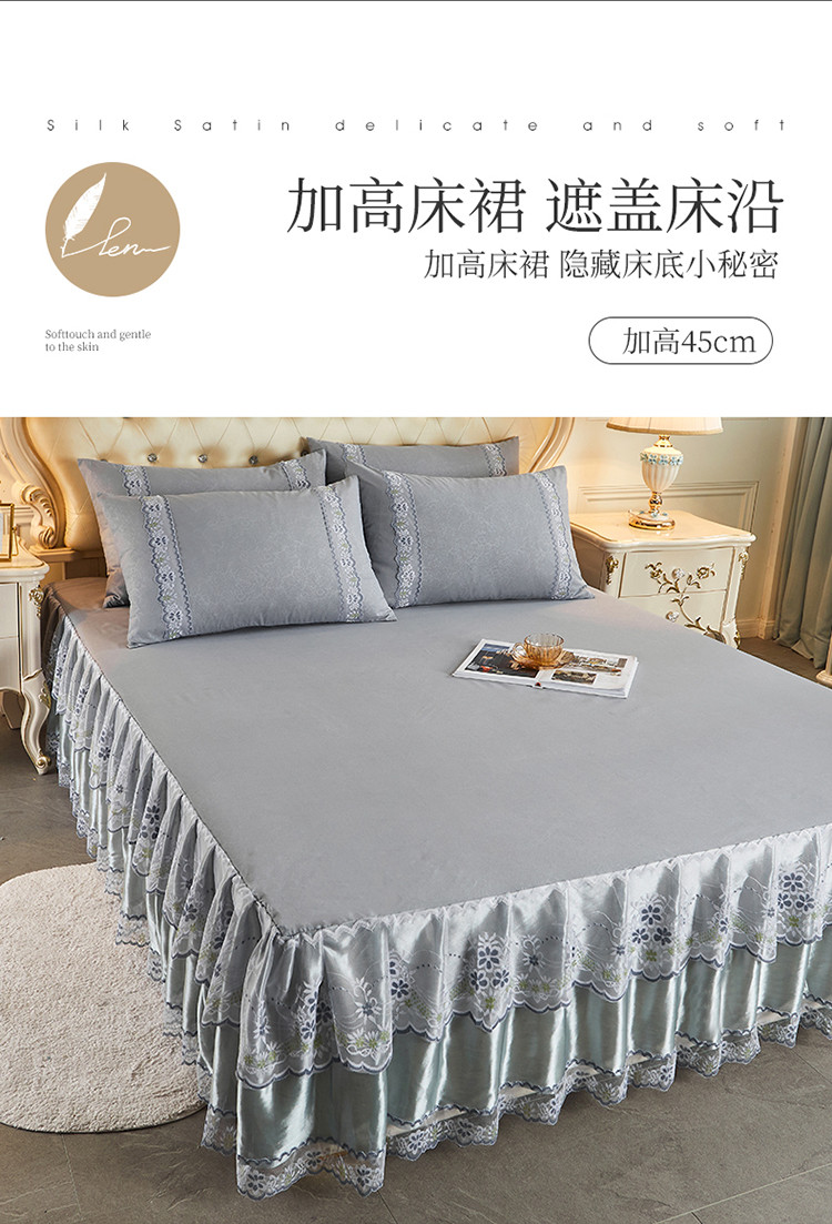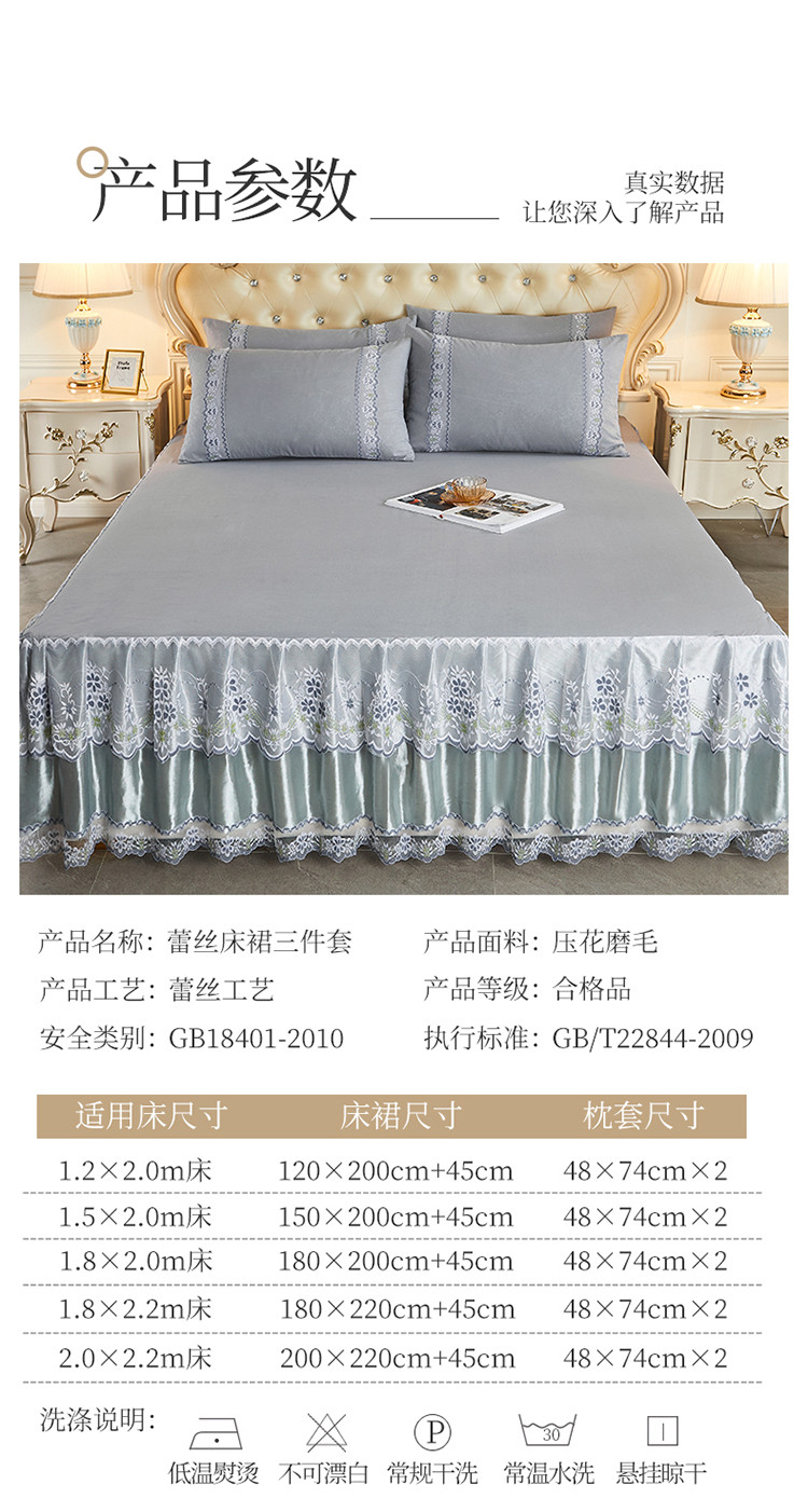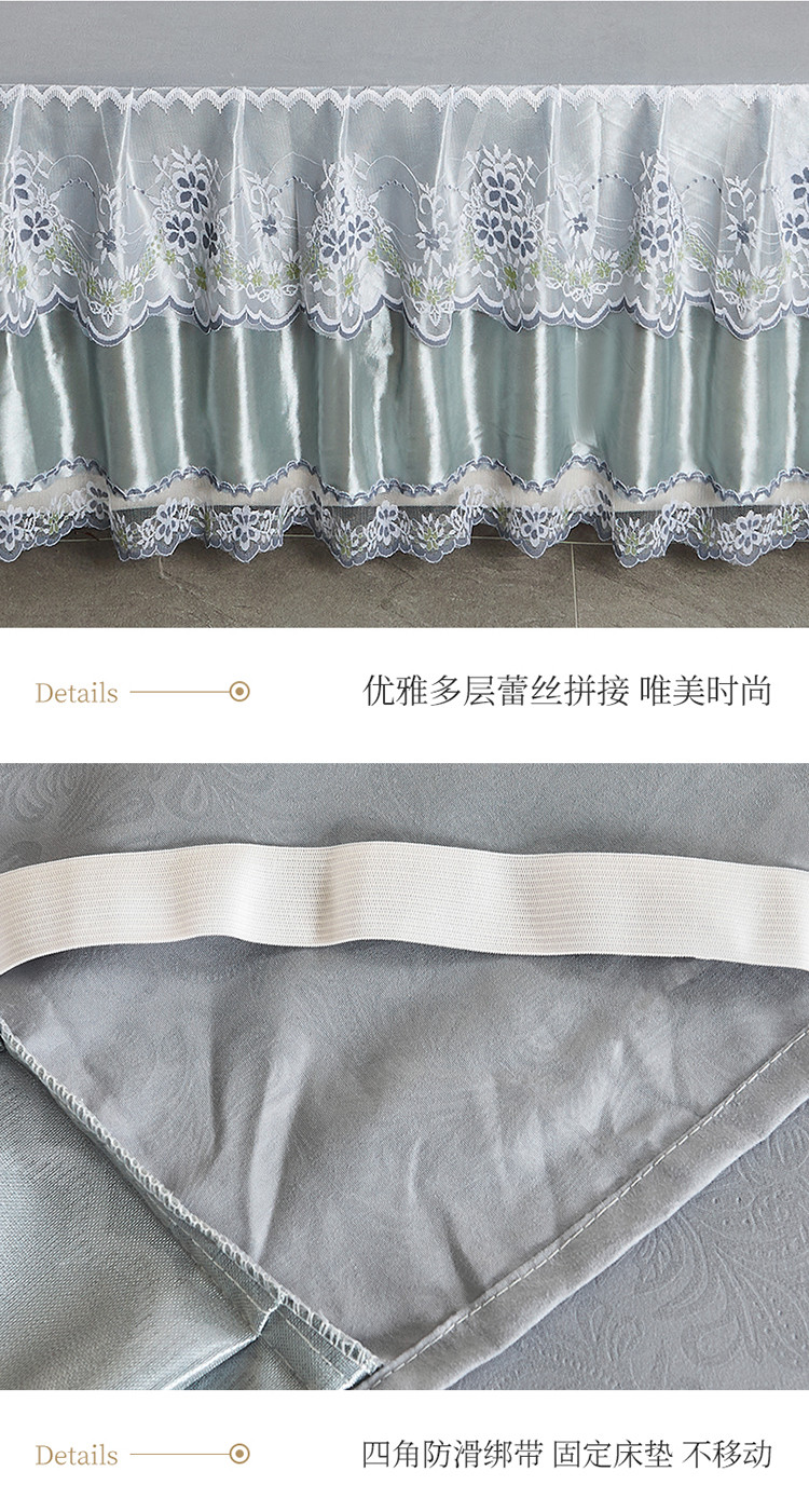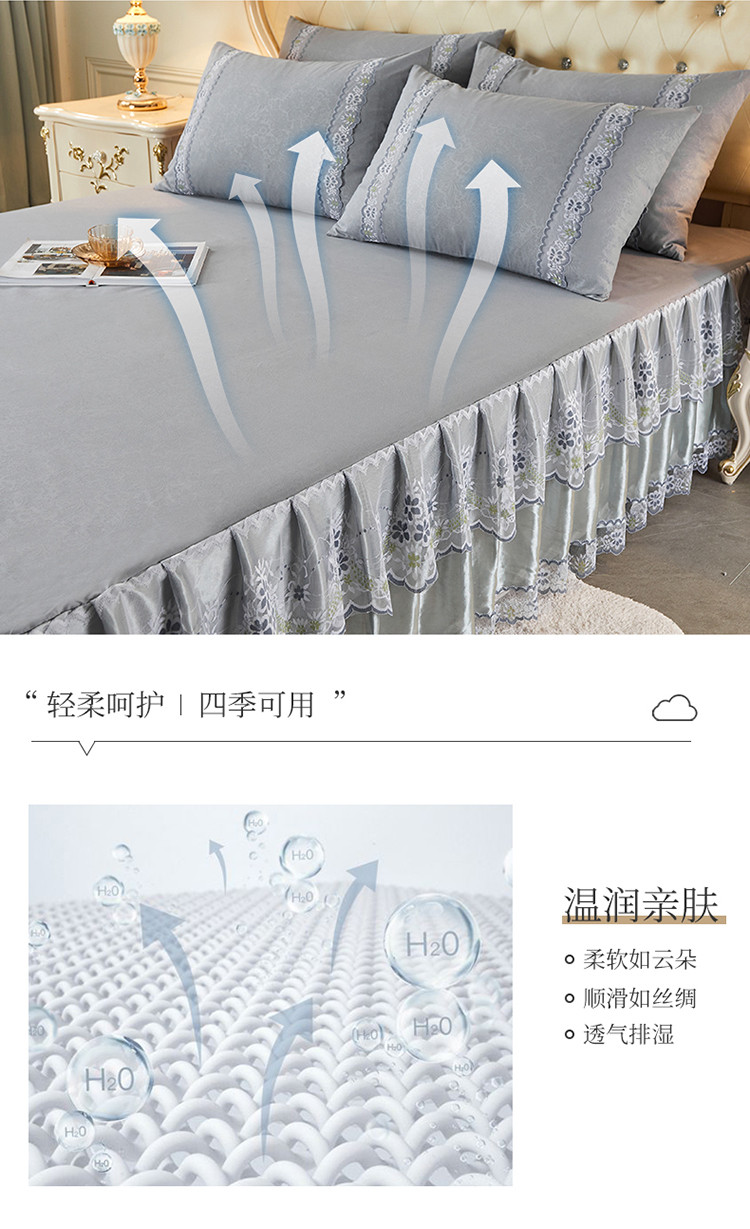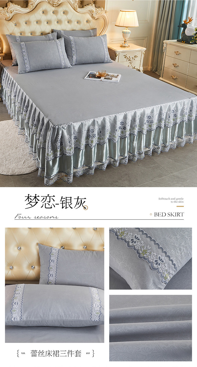 商品名称:情恒2025新款蕾丝床裙三件套梦恋款 梦恋-银灰