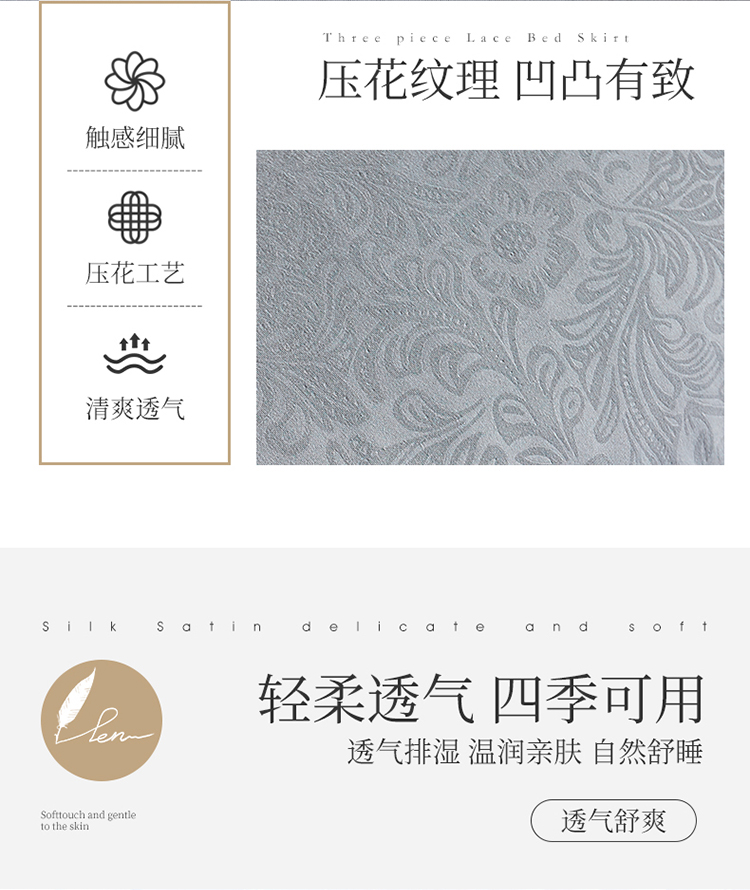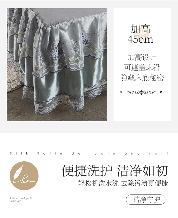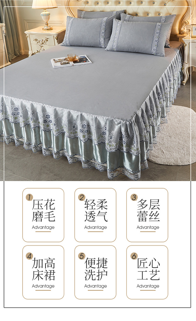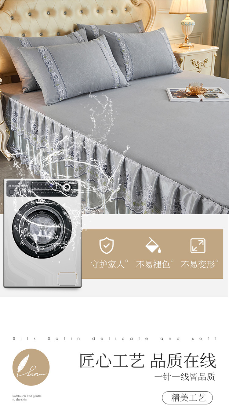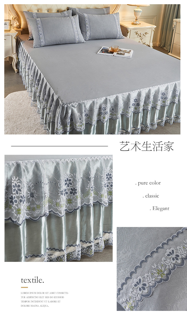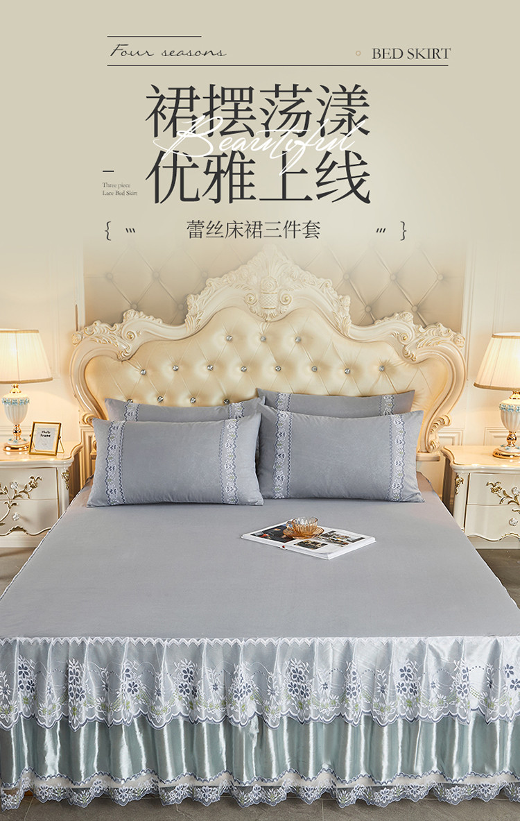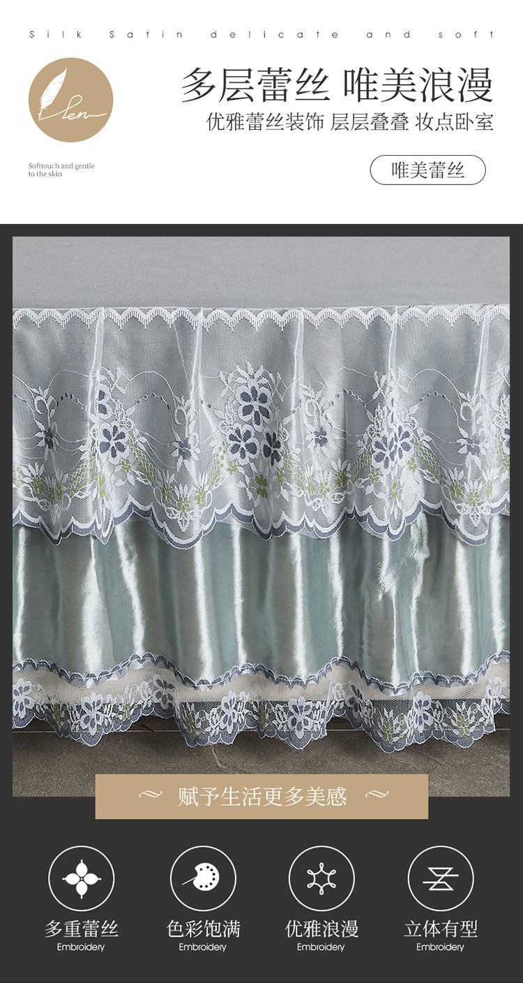 商品名称:情恒2025新款蕾丝床裙三件套梦恋款 梦恋-银灰