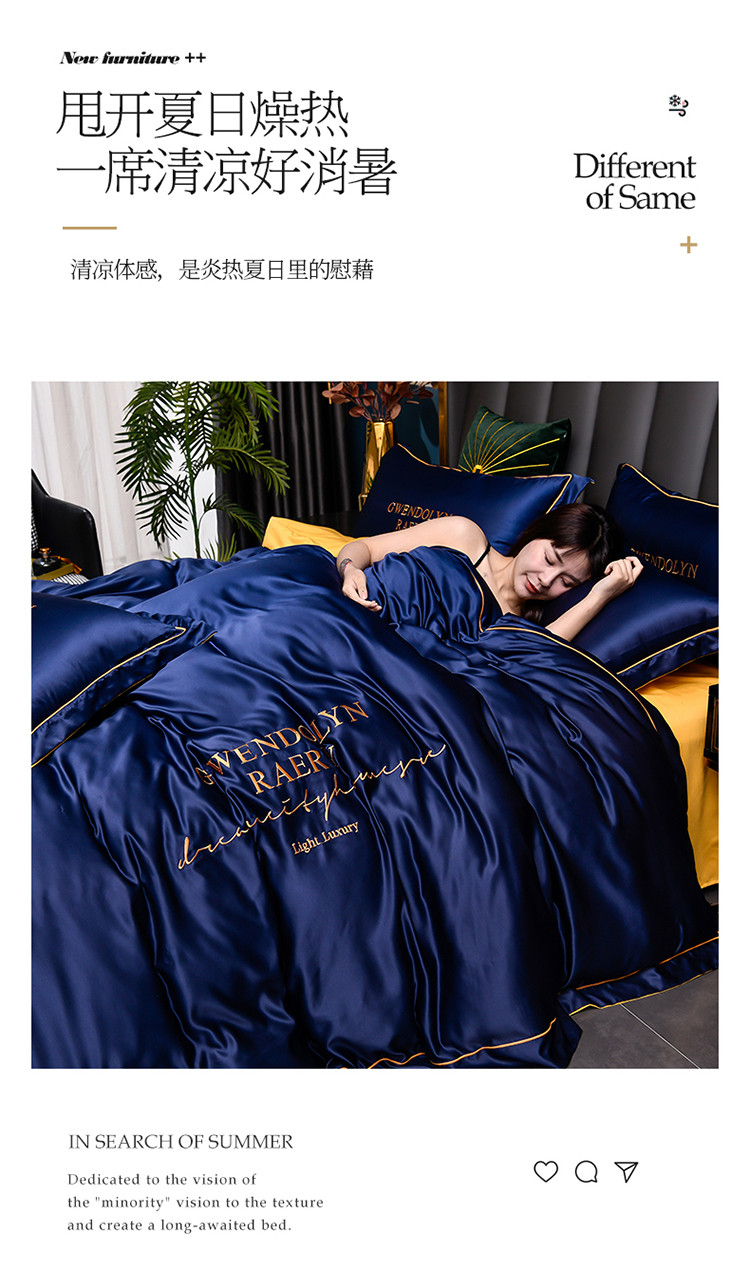 (总)意尚风情 2022新款莫代尔天丝水洗真丝绣花夏被四件套,宾利蓝,纯白,粉玉,高级灰,墨绿,深蓝,水绿,香槟