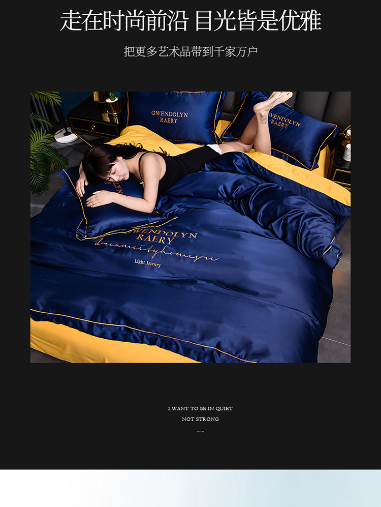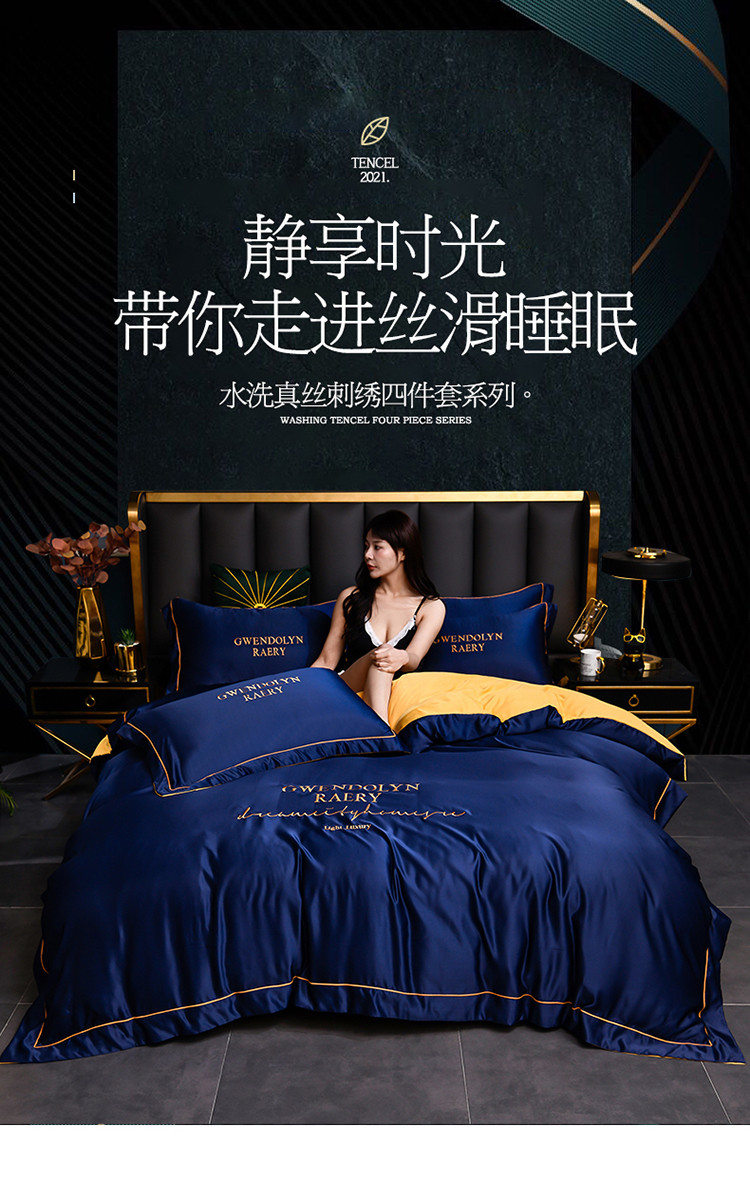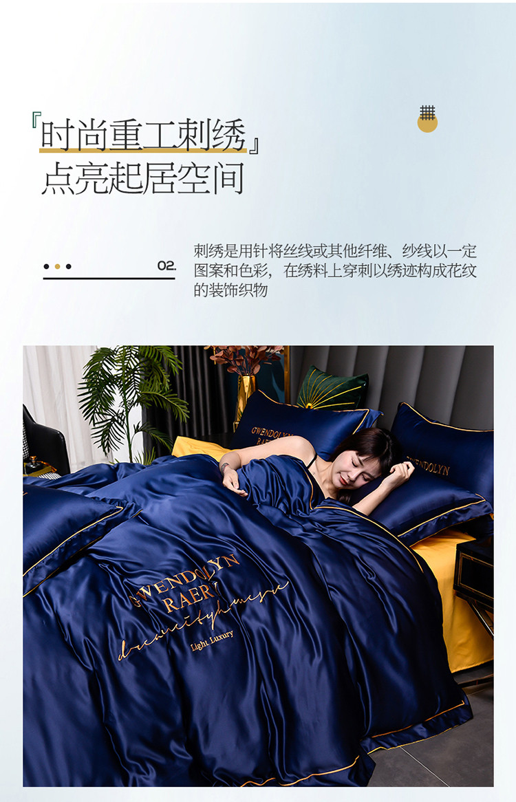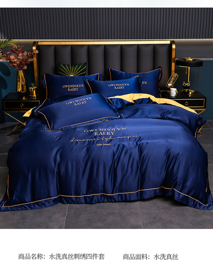 商品名称:意尚风情2023新款绣花水洗真丝四件套 千韵-藏兰