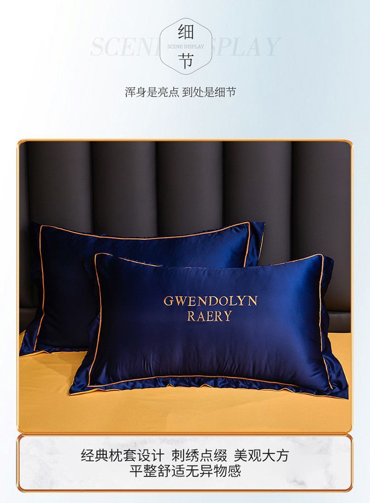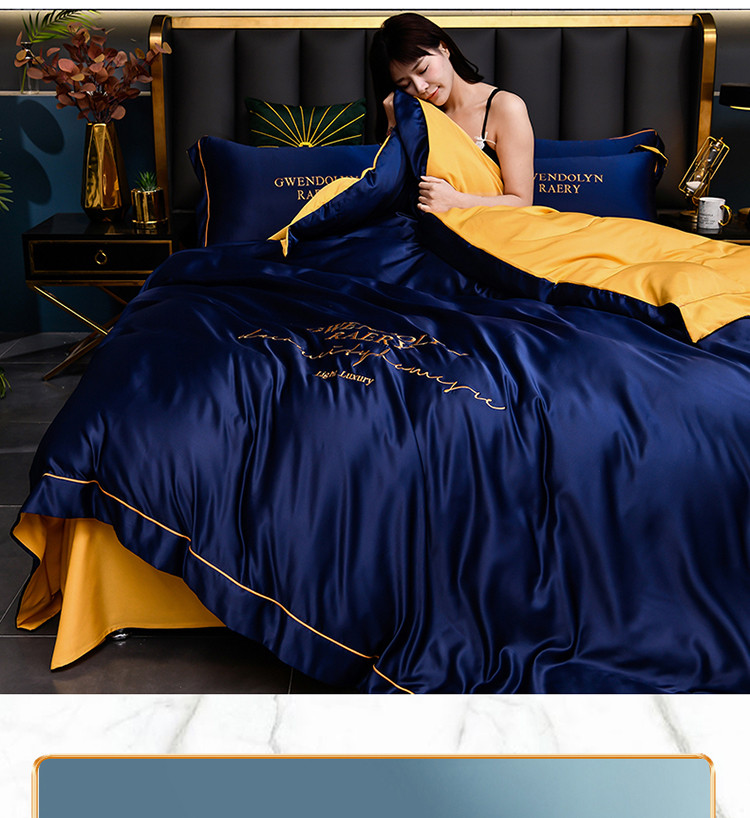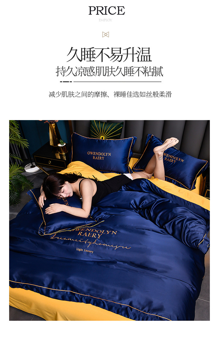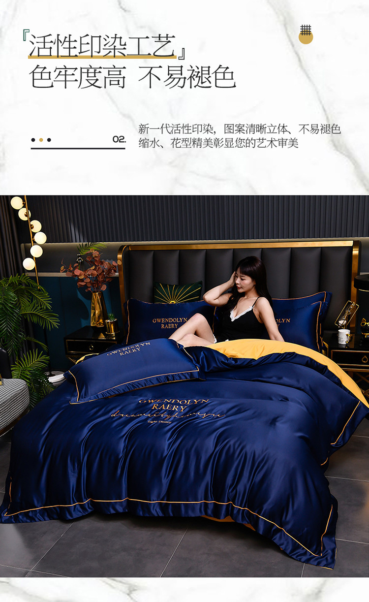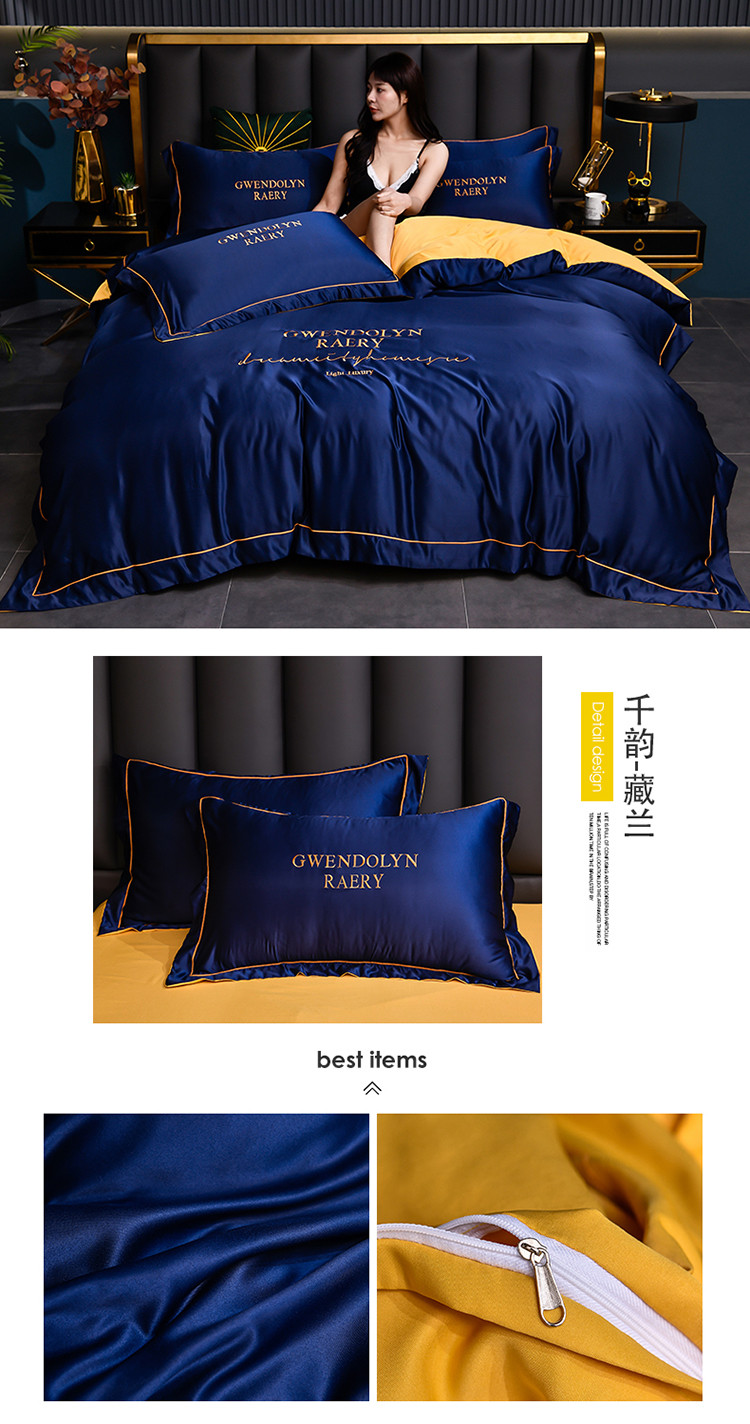 商品名称:意尚风情2023新款绣花水洗真丝四件套 千韵-藏兰