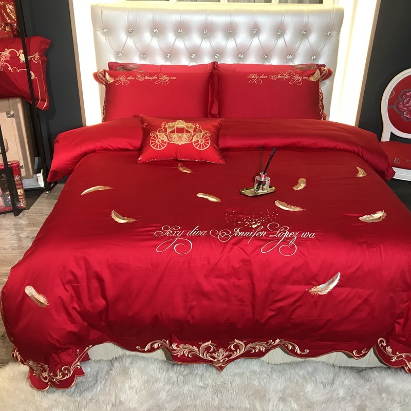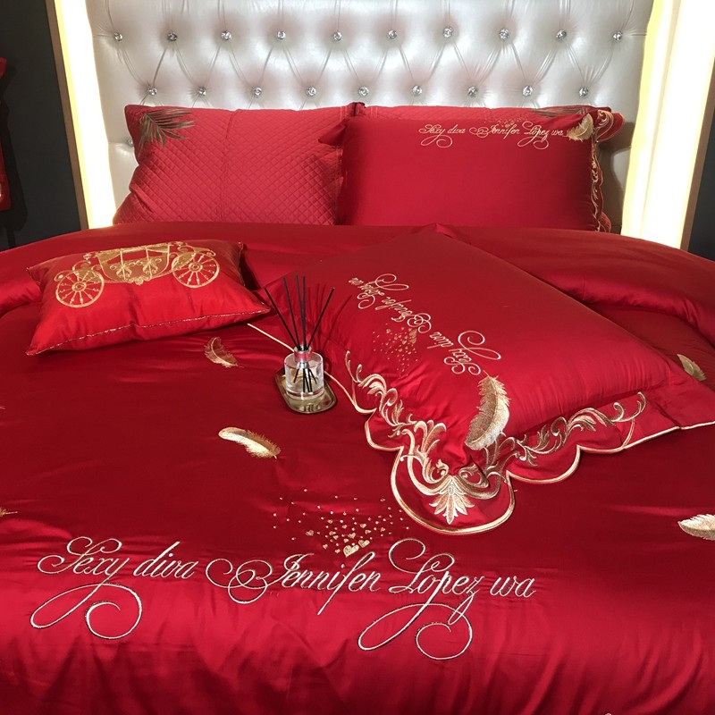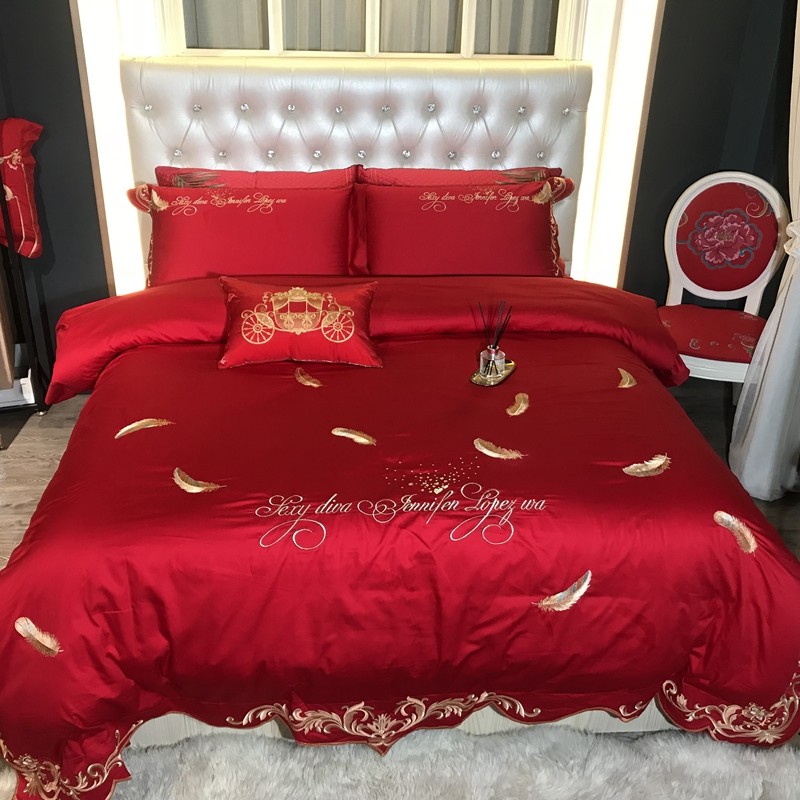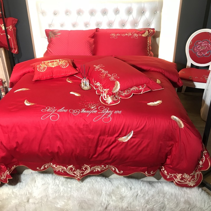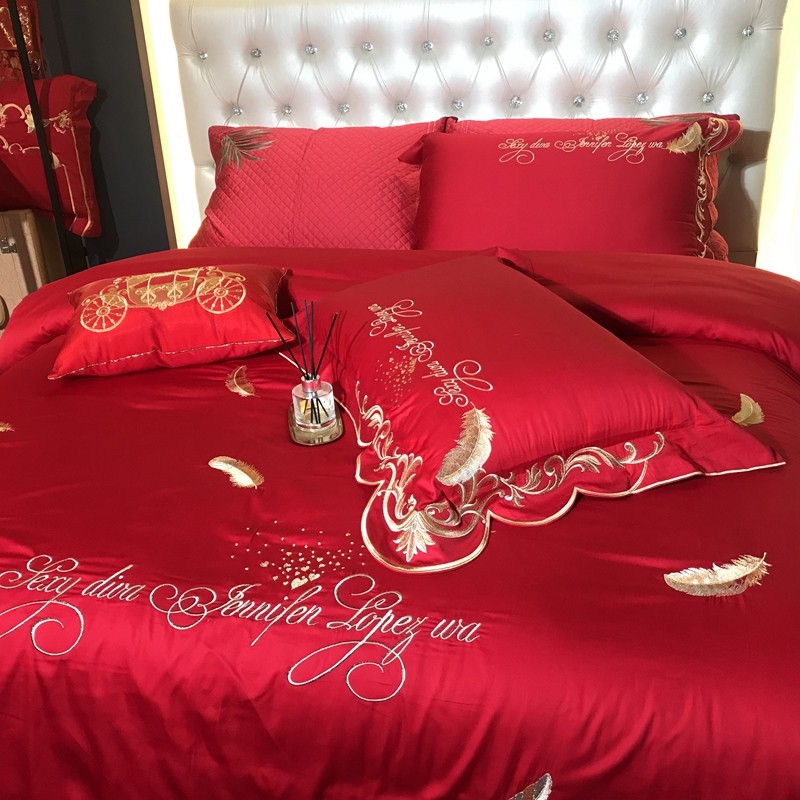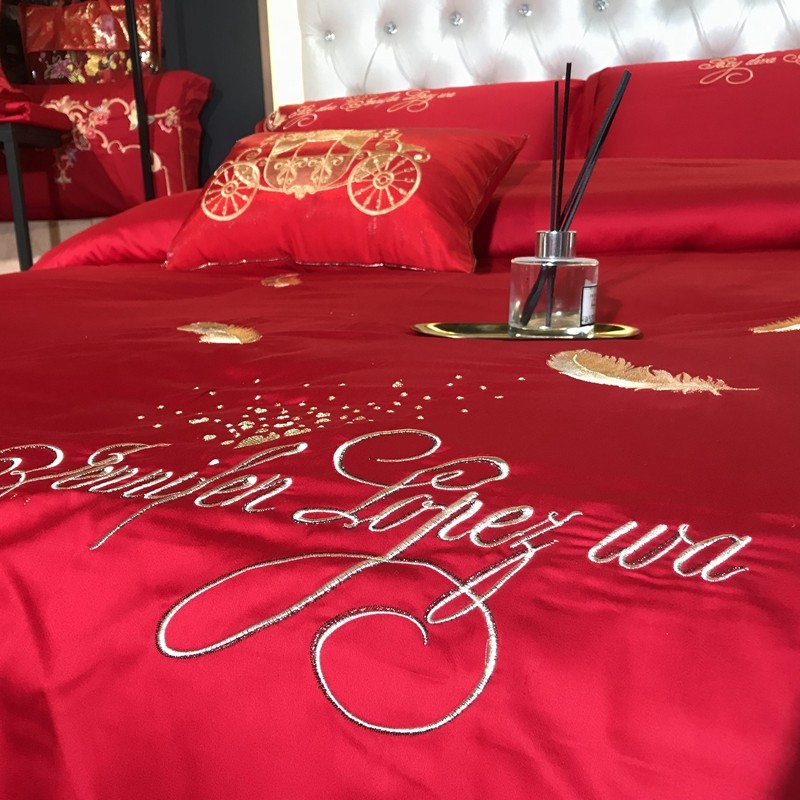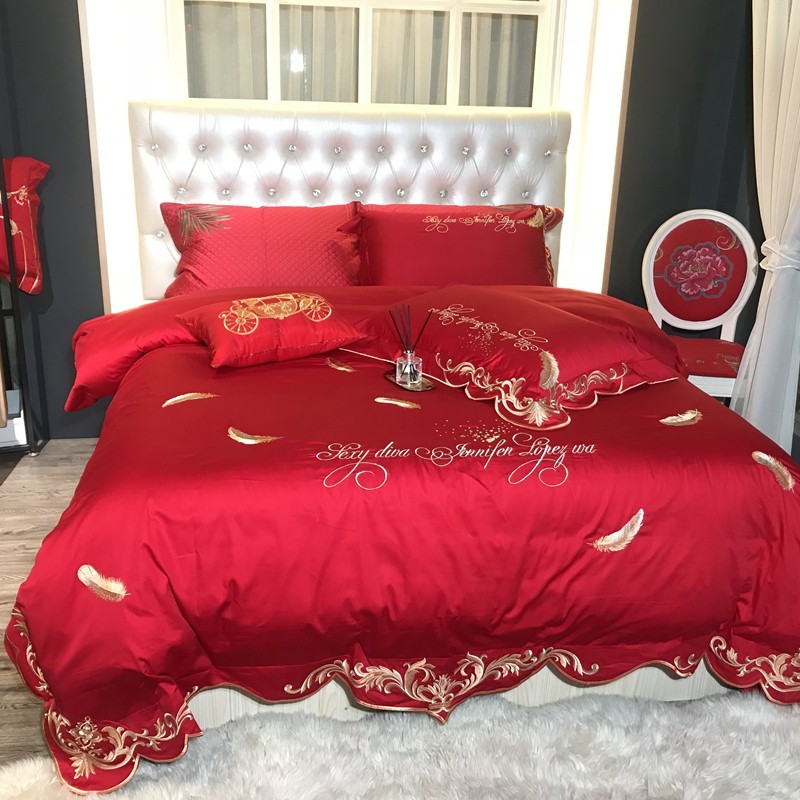 玖玖爱 2021新款100支婚庆绣花四件套 霓裳羽衣