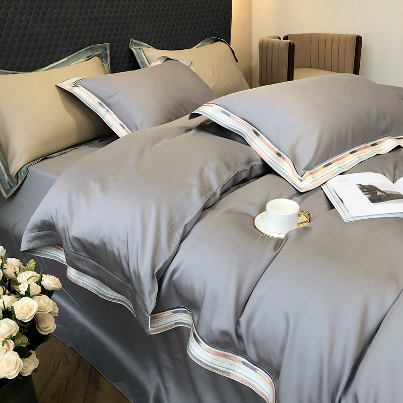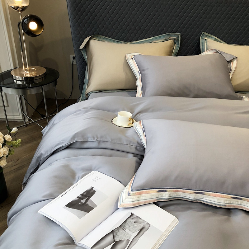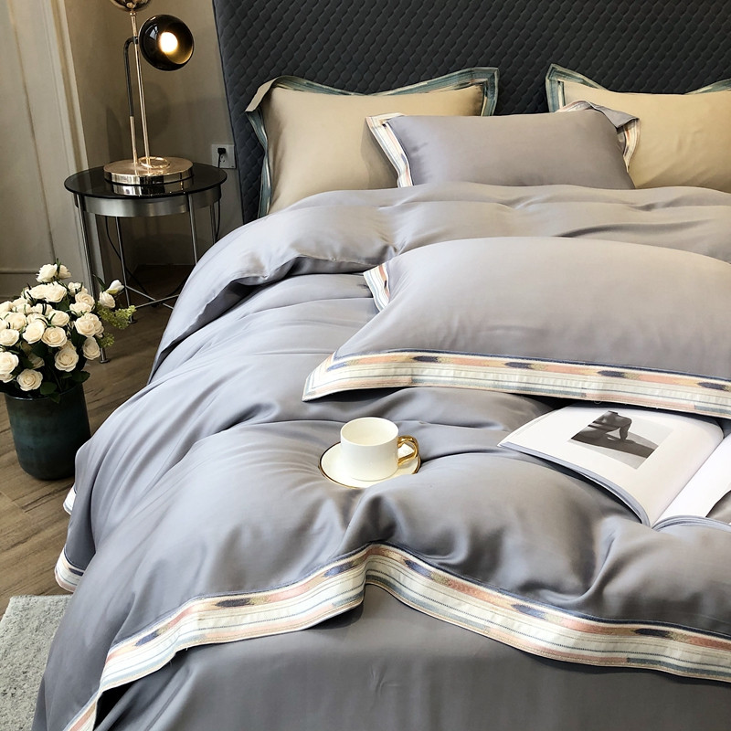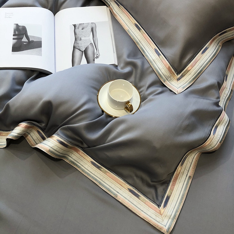 涞澳家纺 2021新款60天丝绣边款四件套 维密-灰