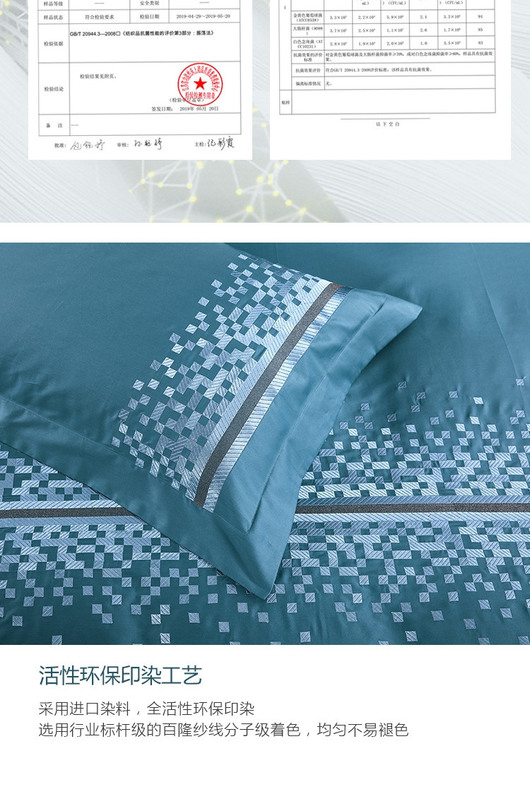 商品名称:榻尚家居 2021新款非凡澳棉长绒棉贡缎刺绣床盖款四件套 卡枚尔黛蓝色