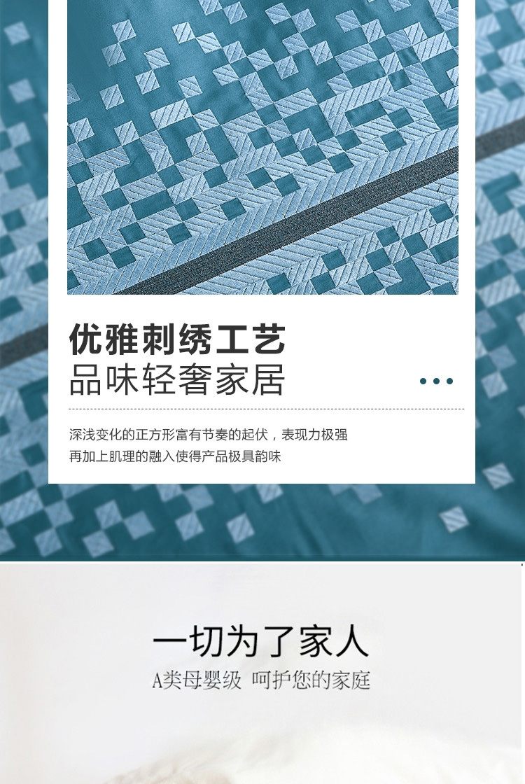 榻尚家居 2021新款非凡澳棉长绒棉贡缎刺绣床盖款四件套 卡枚尔黛蓝色
