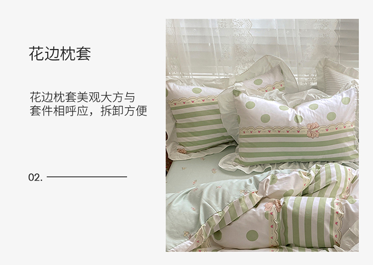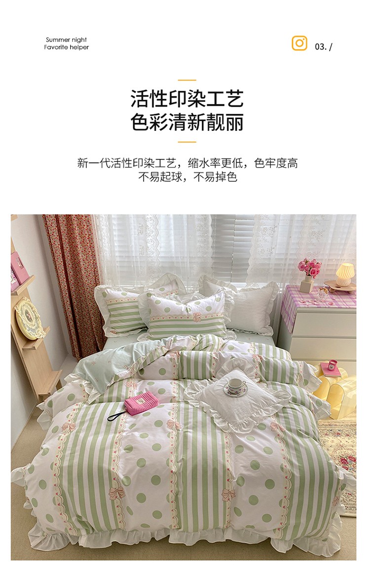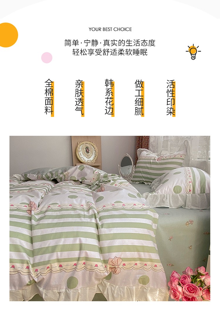 商品名称:雅居纺 2022新款全棉韩版花边四件套 圆点蝴蝶结