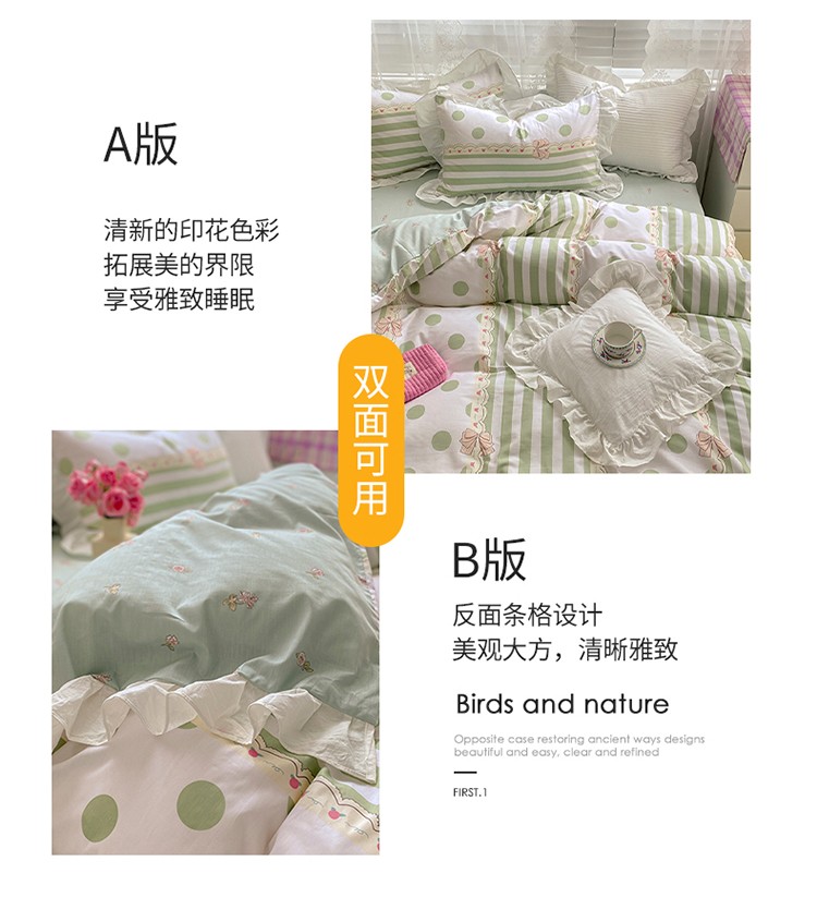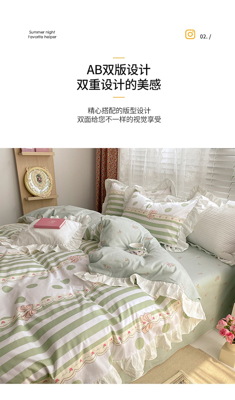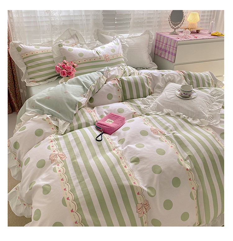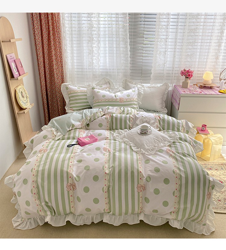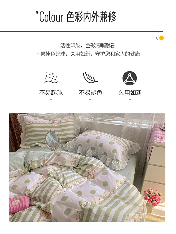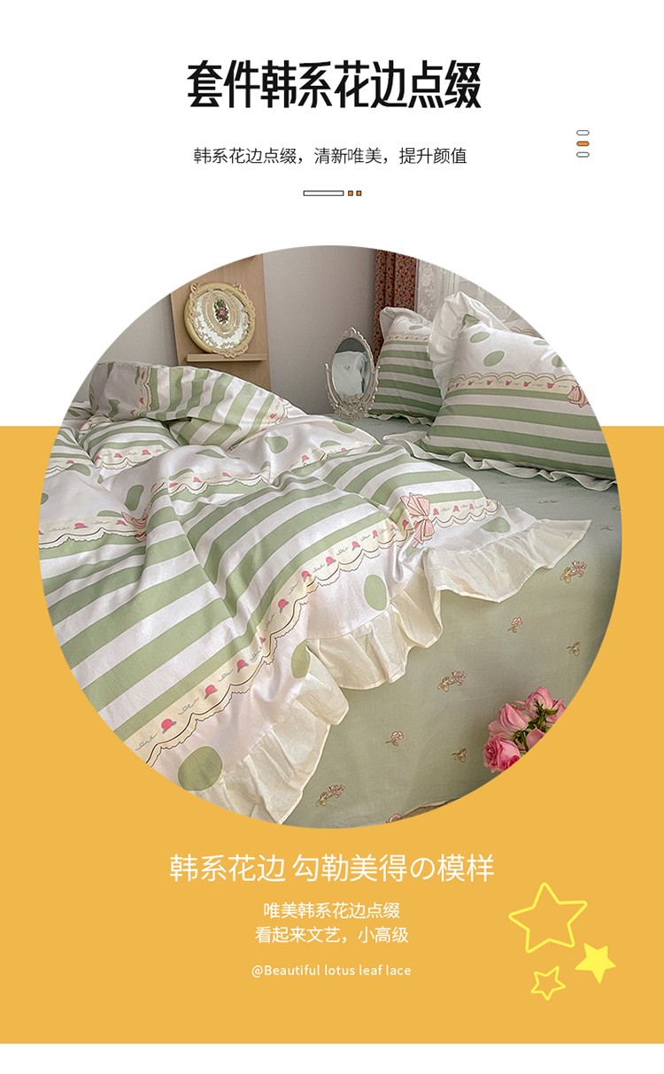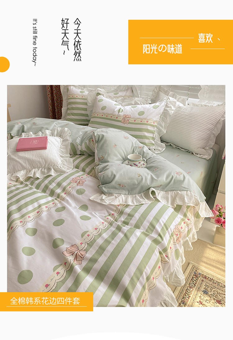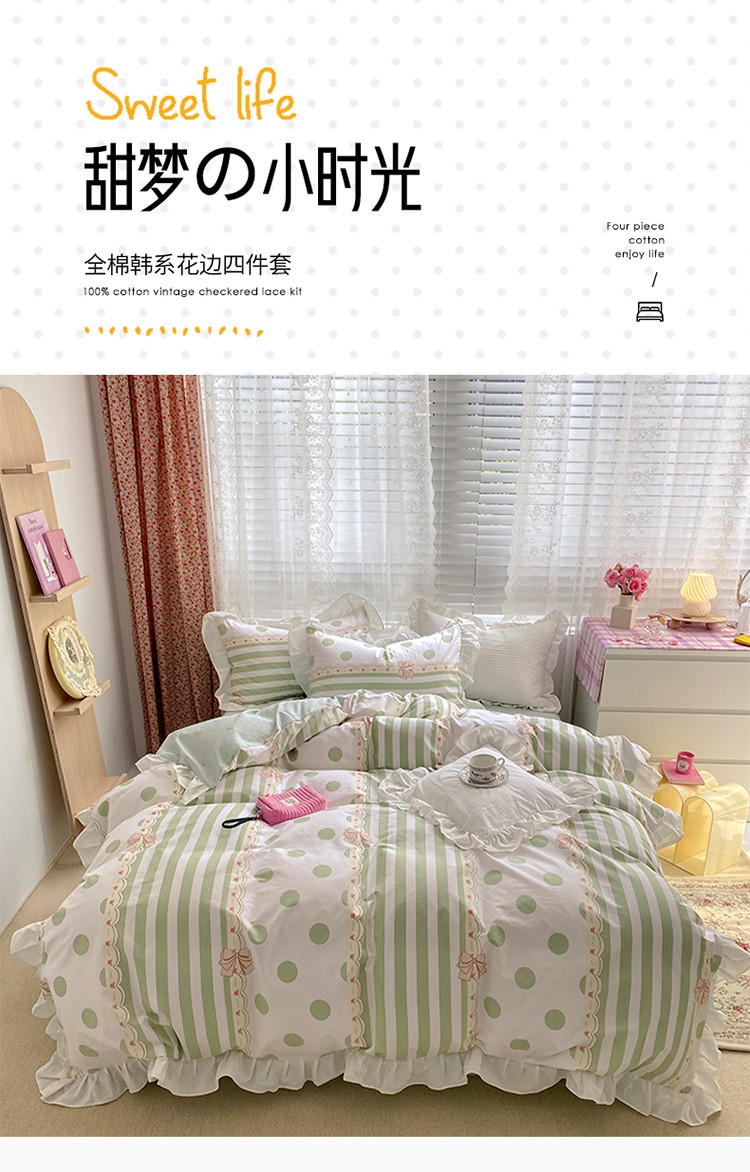雅居纺 2022新款全棉韩版花边四件套 圆点蝴蝶结