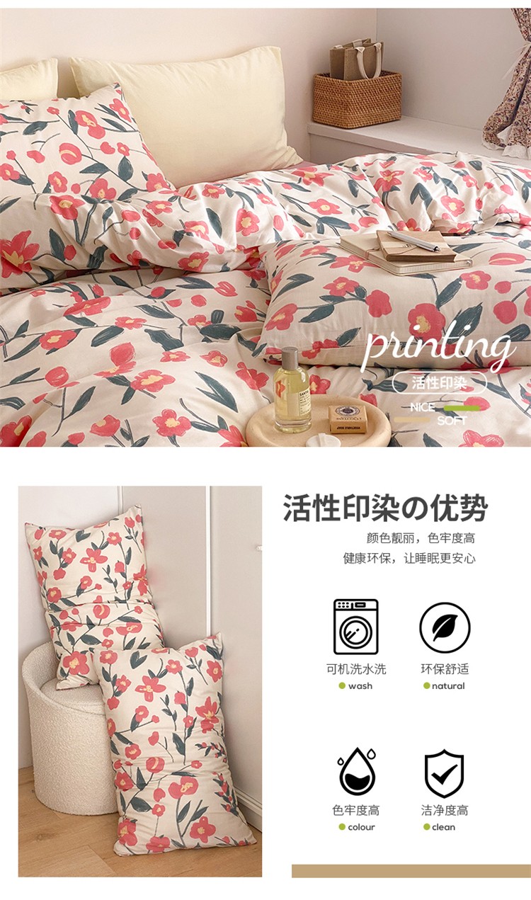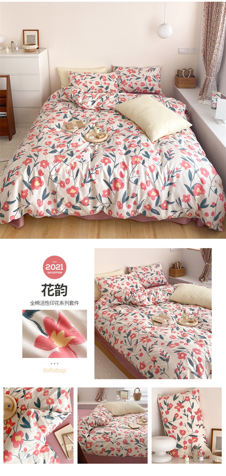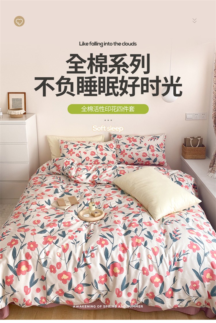 窝米 2021新款夏季新品13370全棉活性印花四件套 花韵