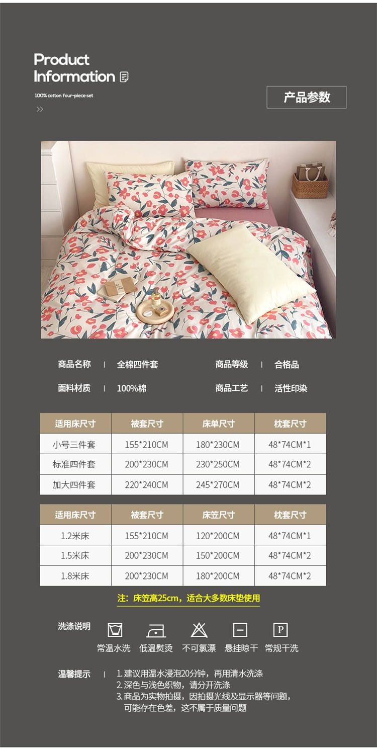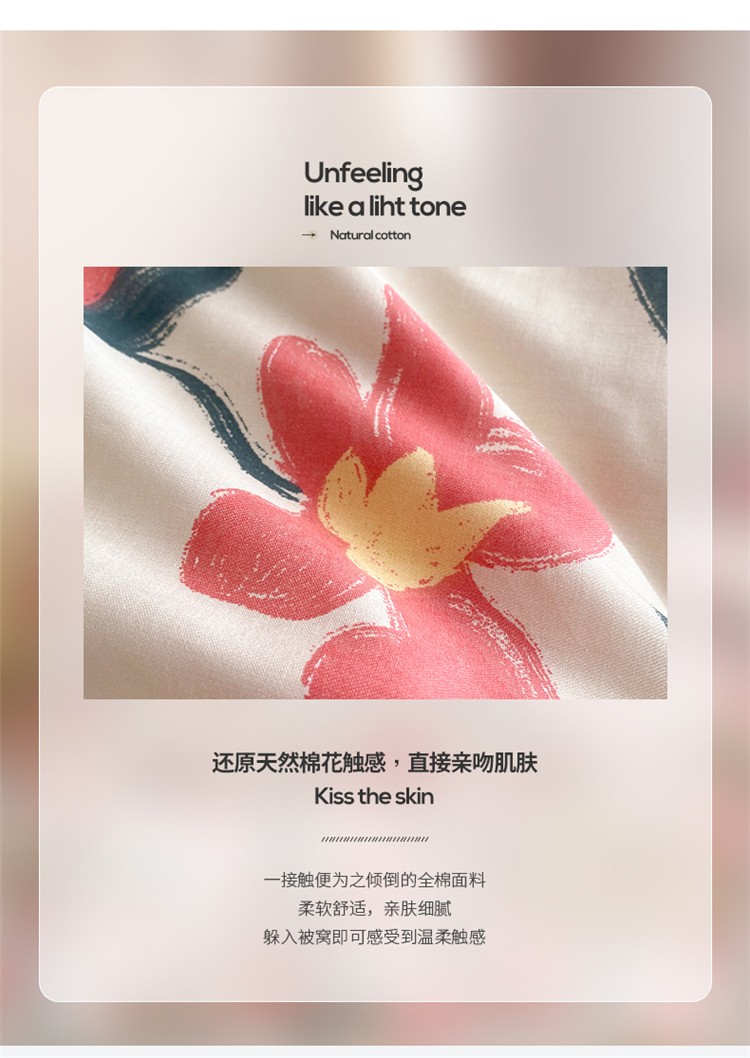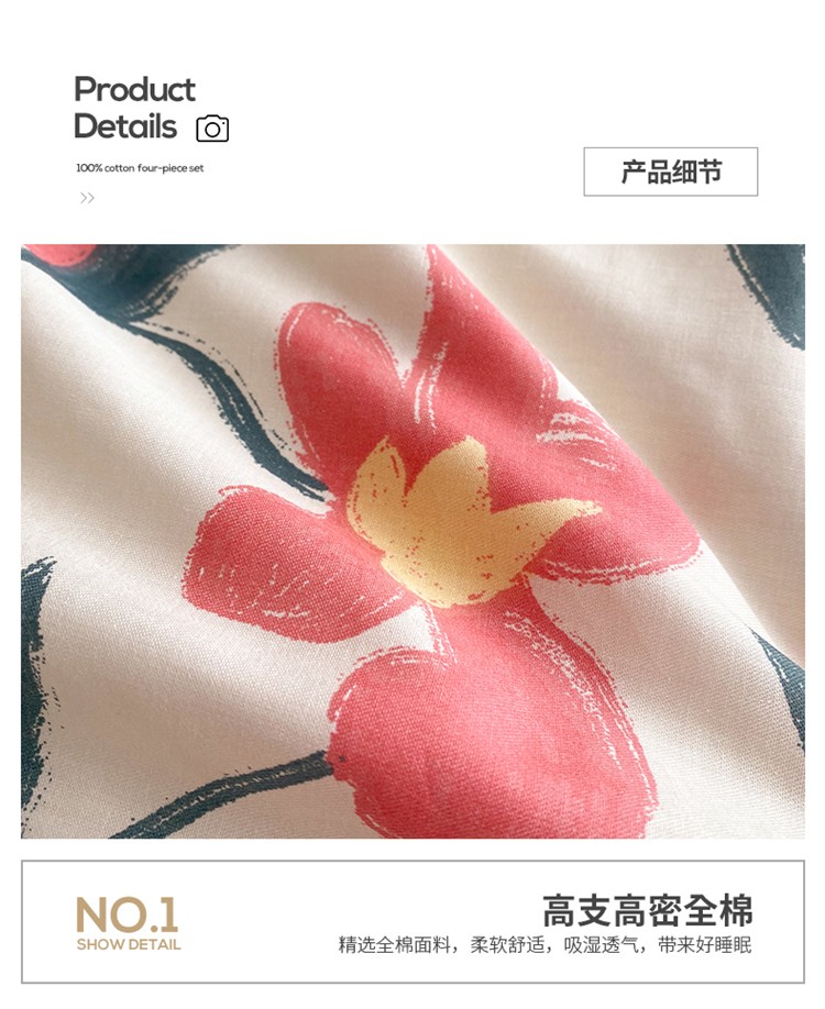 商品名称:窝米 2021新款夏季新品13370全棉活性印花四件套 花韵