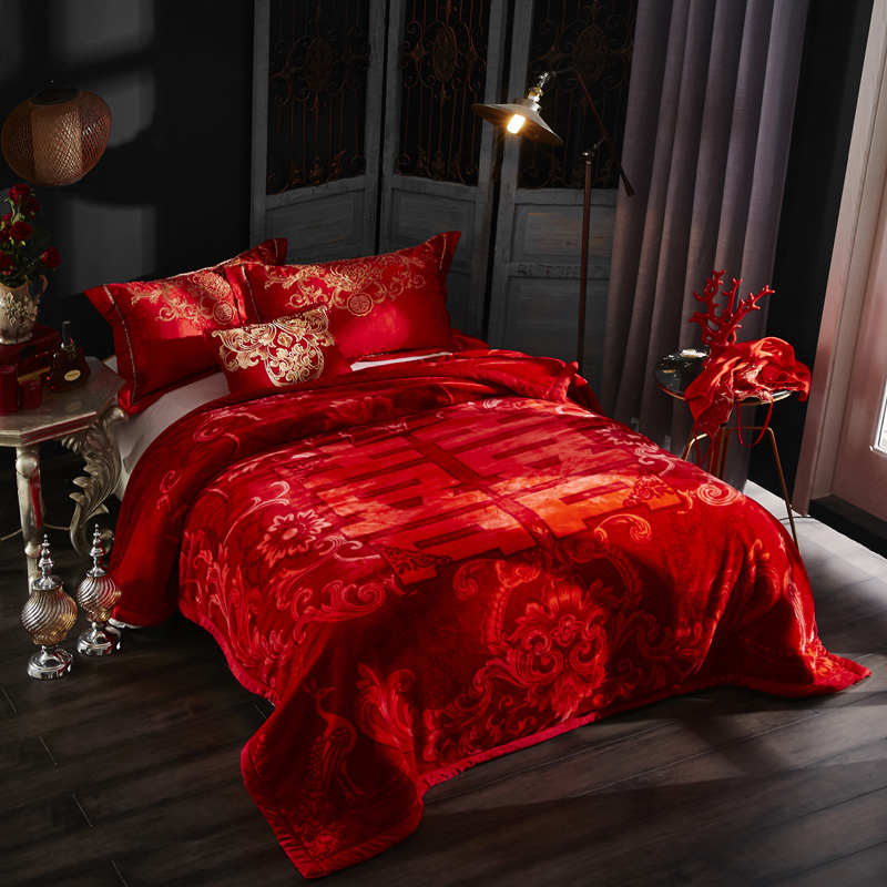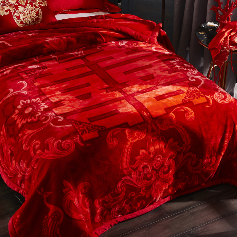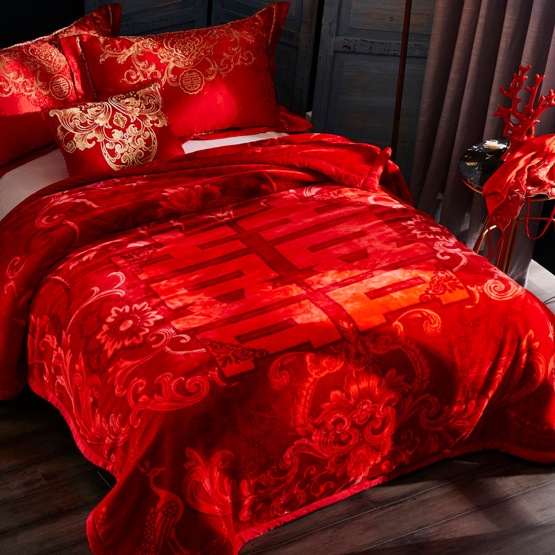 凯轩毛毛毯毯子 2024新款婚庆云毛毯毯子 我家有喜