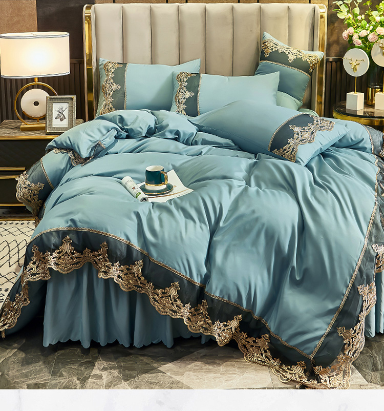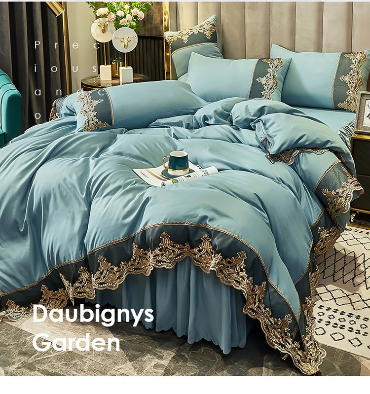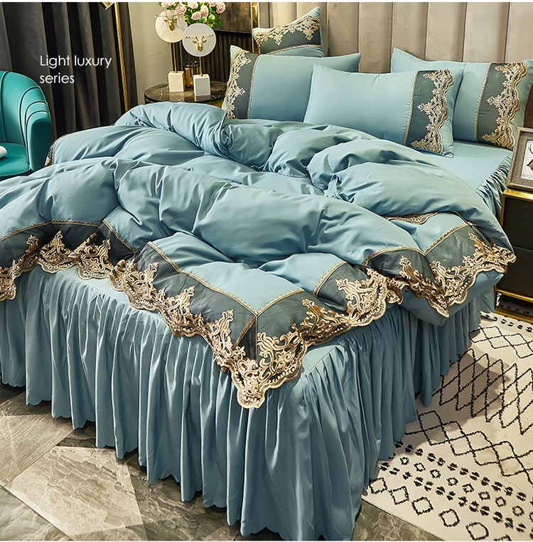 莉莉安 2025新款亲肤磨毛欧式花边床裙四件套 莫娜-月光蓝