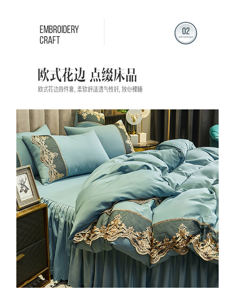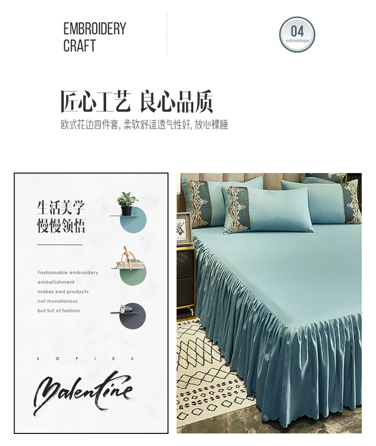 (总)莉莉安 2025新款亲肤磨毛欧式花边床裙四件套,莫娜-孔雀绿,莫娜-梦之蓝,莫娜-绅士灰,莫娜-香槟玉,莫娜-象牙白,莫娜-胭脂红,莫娜-烟薰紫,莫娜-月光蓝