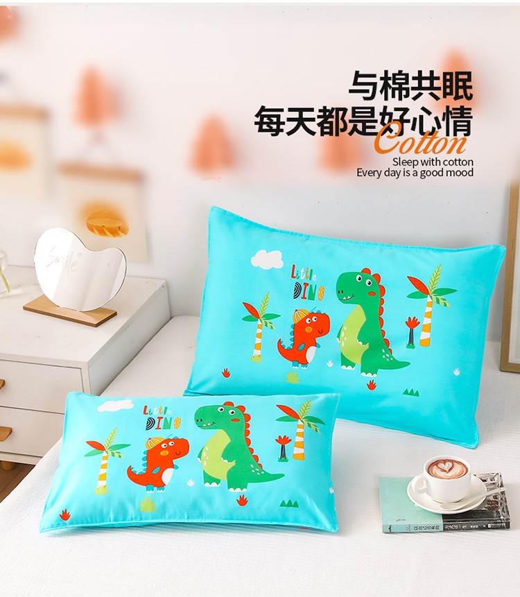 吉咪兔家纺 2022新款13372纯棉卡通定位枕套恐龙兄弟蓝
