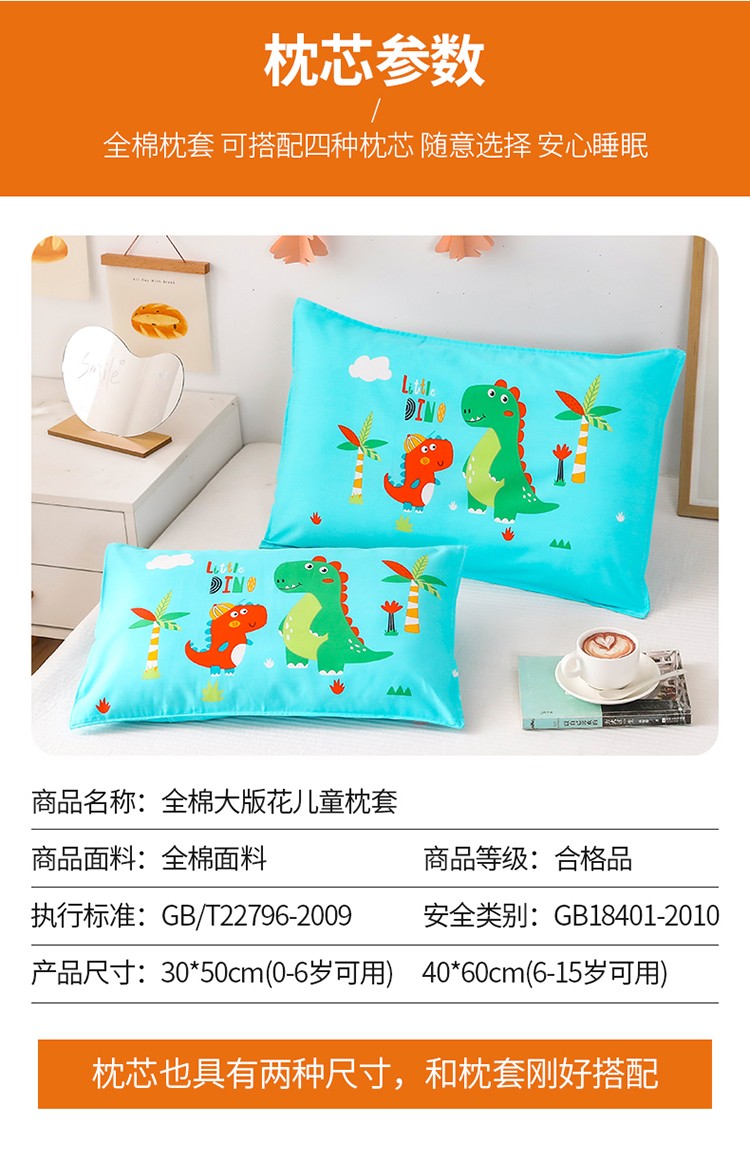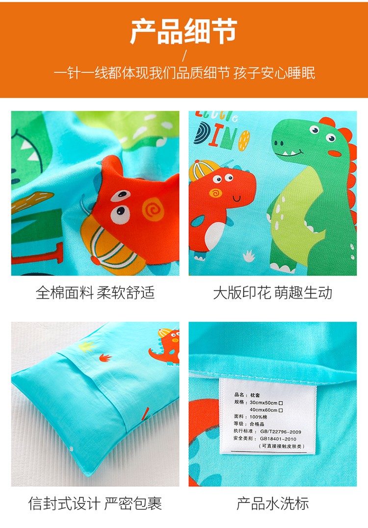 商品名称:吉咪兔家纺 2022新款13372纯棉卡通定位枕套恐龙兄弟蓝
