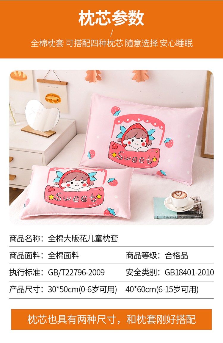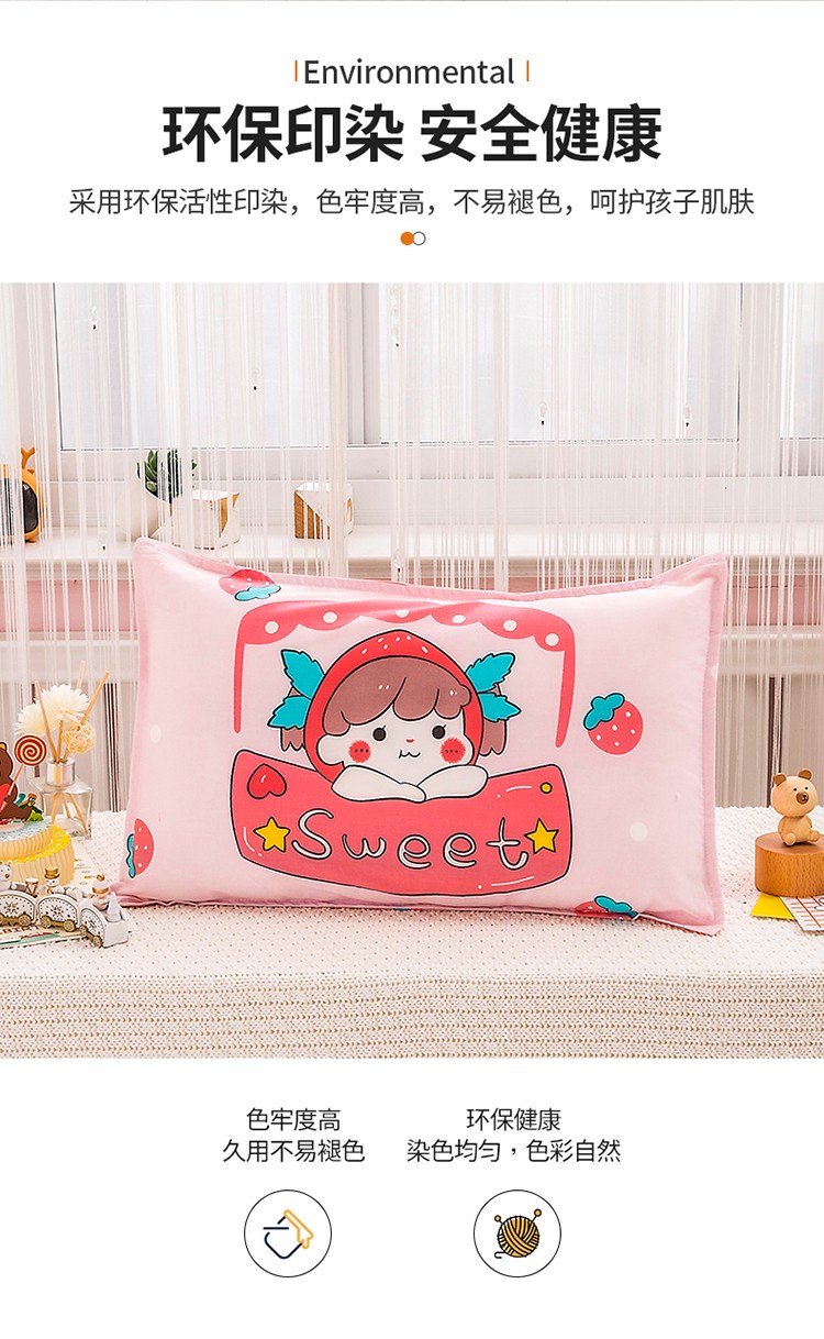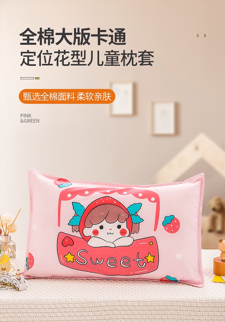 商品名称:吉咪兔家纺 2022新款13372纯棉卡通定位枕套 草莓女孩
