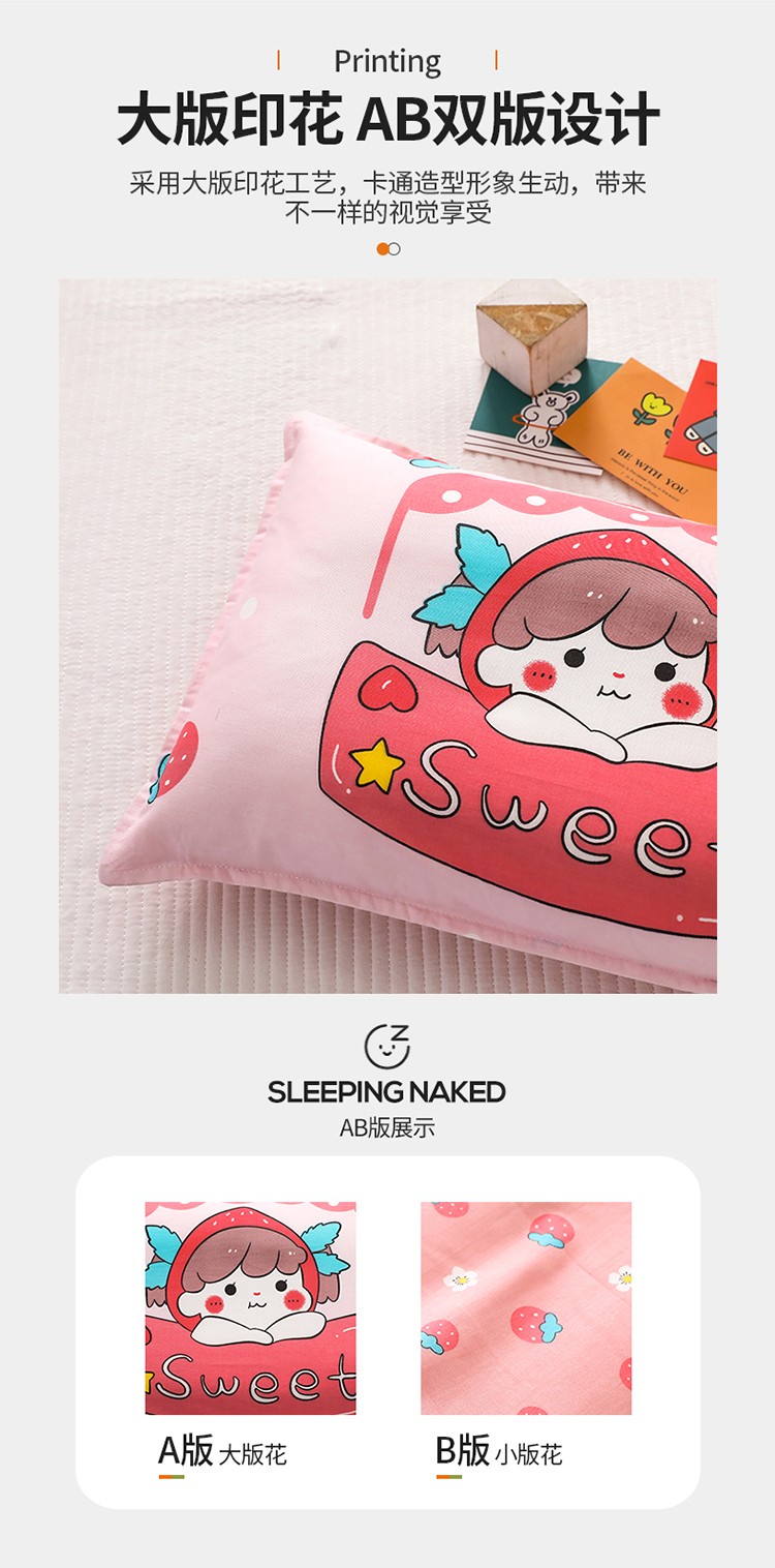 吉咪兔家纺 2022新款13372纯棉卡通定位枕套 草莓女孩