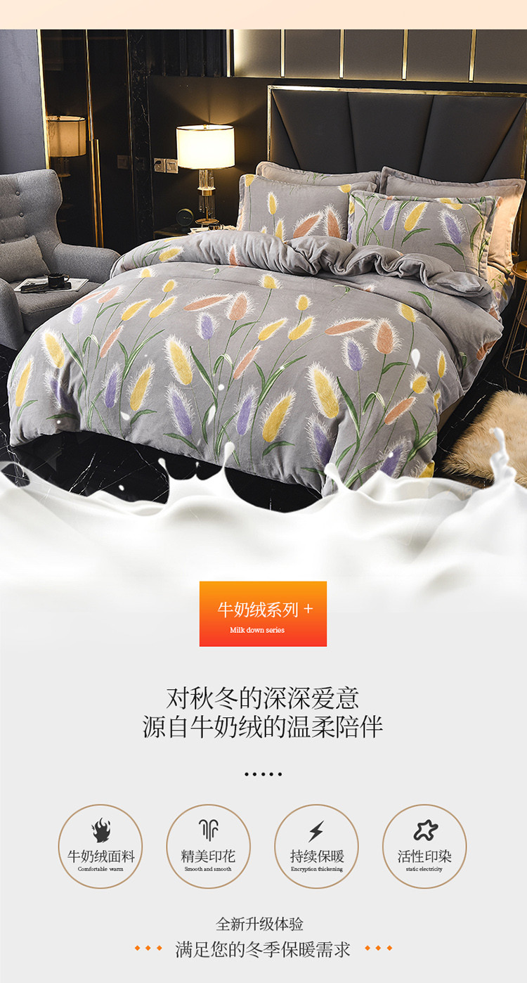 当前位置: 91家纺网 > 商品网购 > 床品套件 > 四件套 > 牛奶绒四件套 > 锦罗绣 2021新款牛奶绒印花四件套 狼尾草