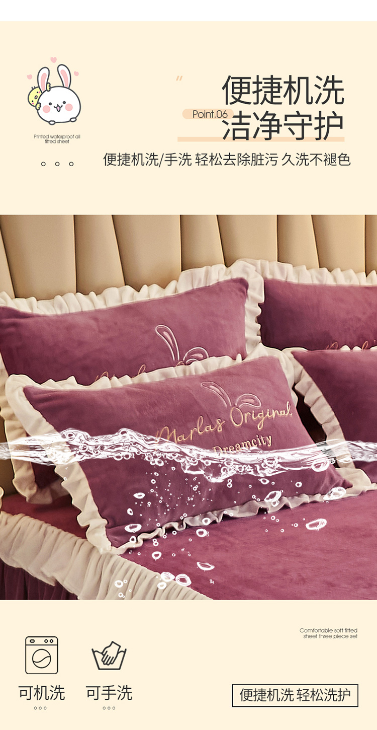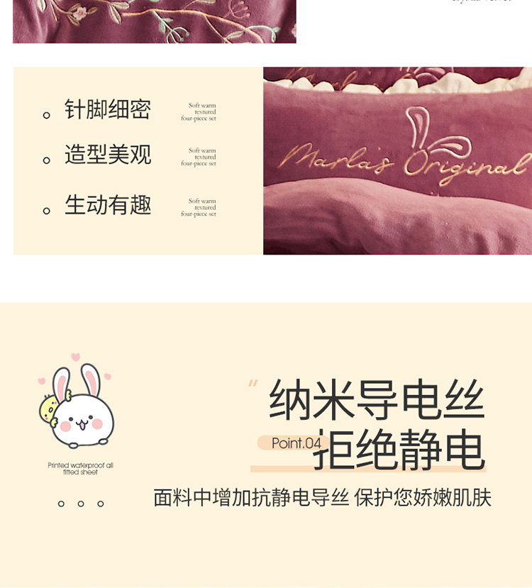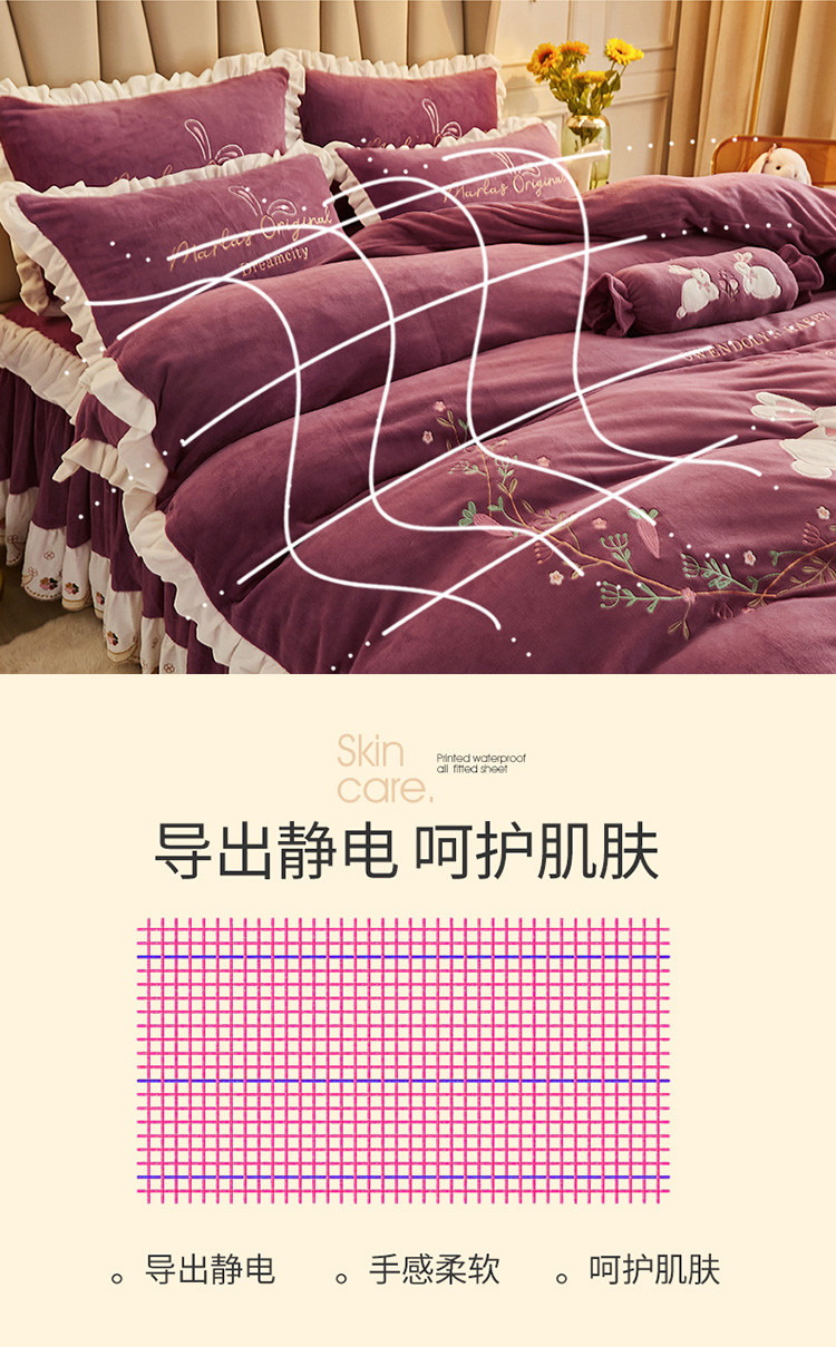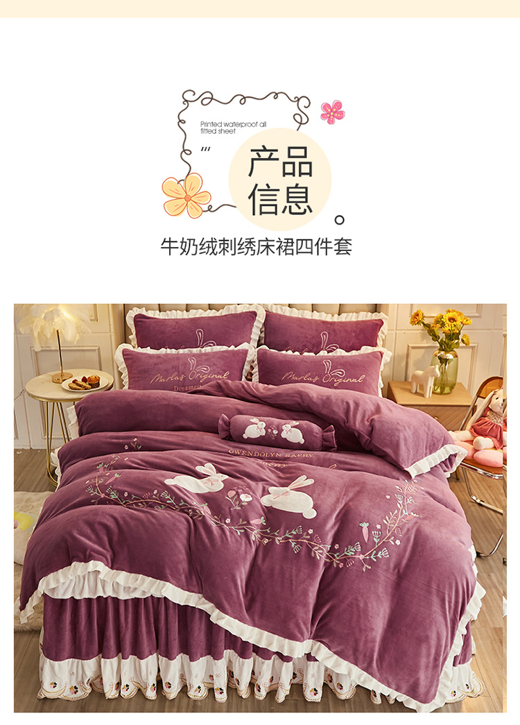 商品名称:宜凡 2021新款牛奶绒绣花兔床裙四件套 萌萌兔-烟紫