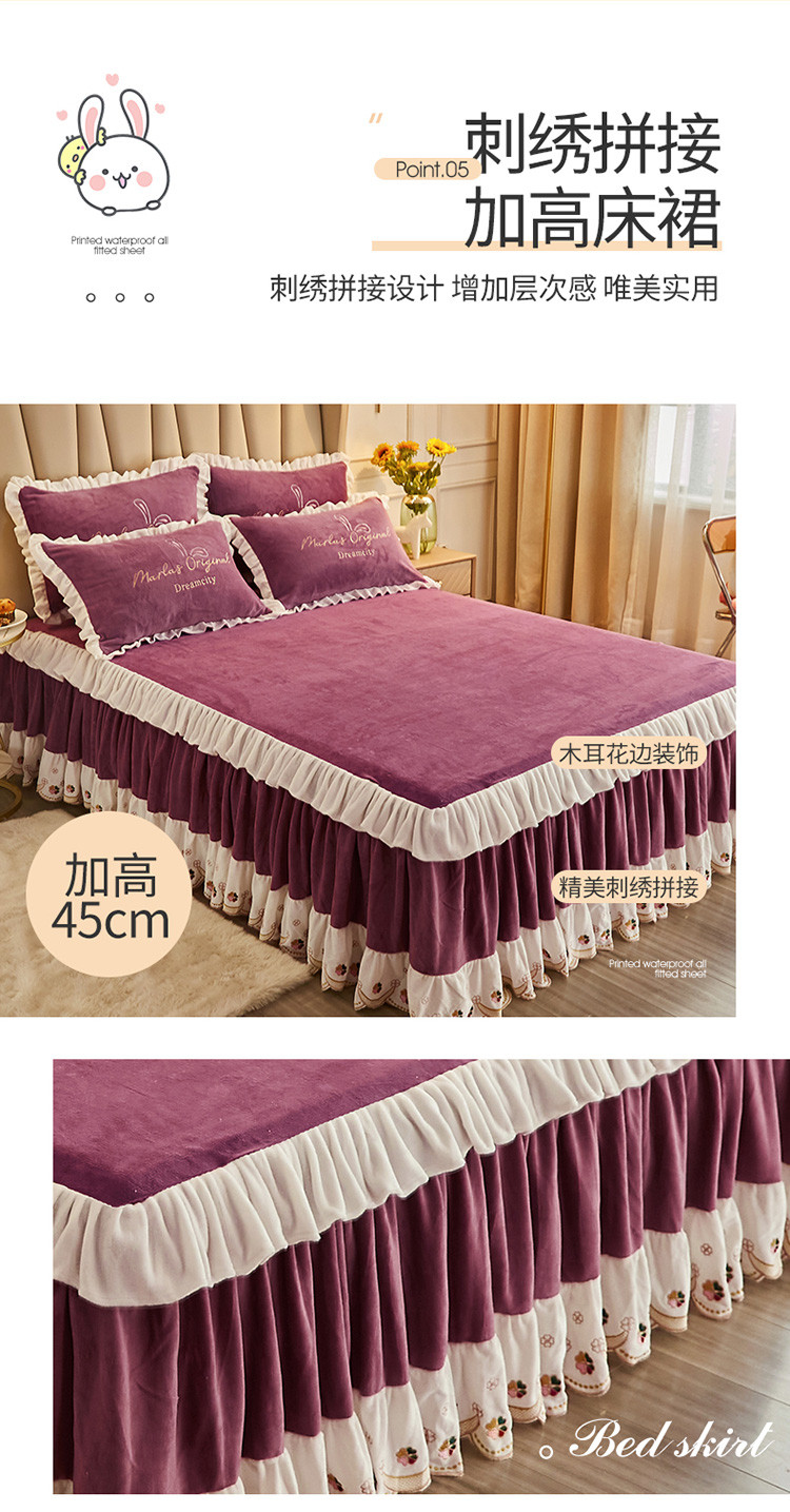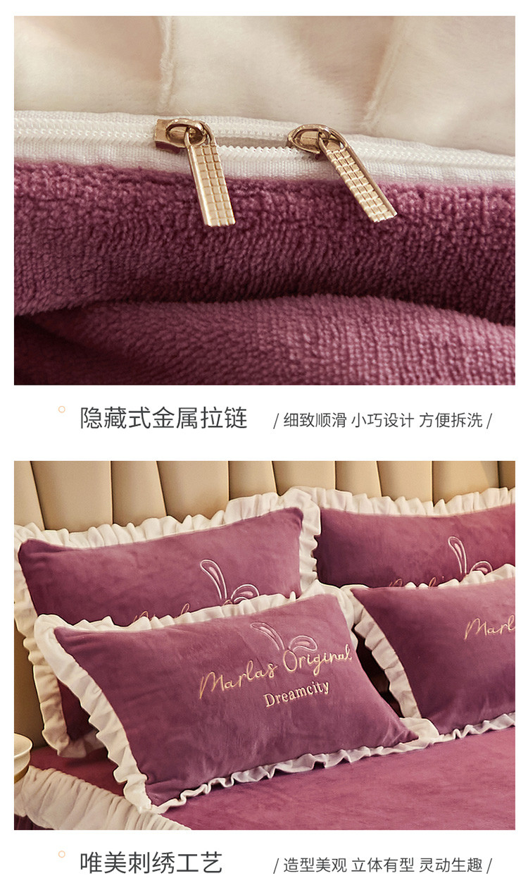 (总)宜凡家纺 2025新款兔绒提花牛奶绒夹棉床裙四件套,爱心 少女粉,爱心 粉紫,爱心 驼色,蝶舞 大红,蝶舞 米色,蝶舞 浅紫,蝶舞 玉色,简爱 苍青,简爱 豆沙紫,简爱 玉色,樱桃 苍青,樱桃 豆沙紫,樱桃 奶油白