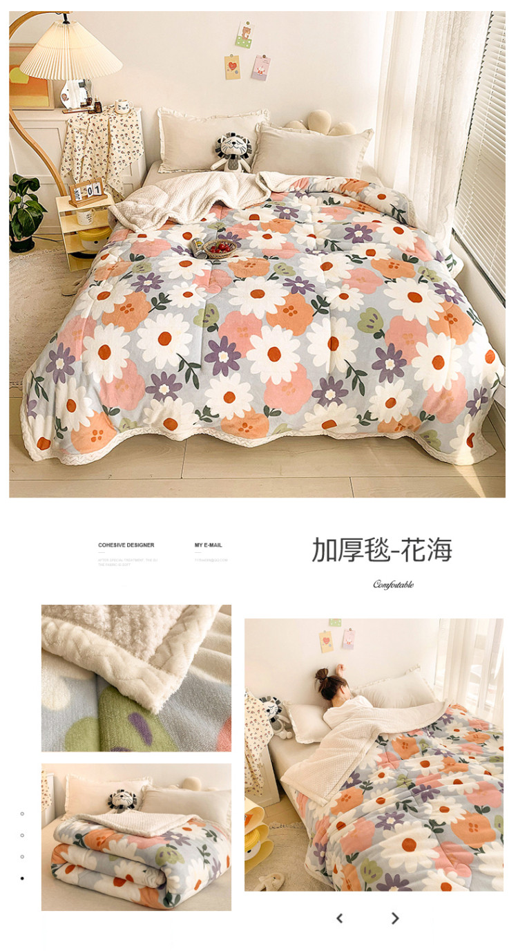 商品名称:慕尚家纺2022新款牛奶绒贝贝绒三层加厚毛毯加厚毯-花海