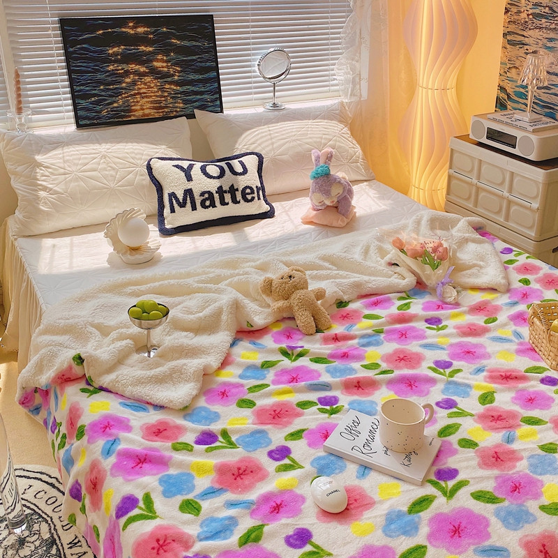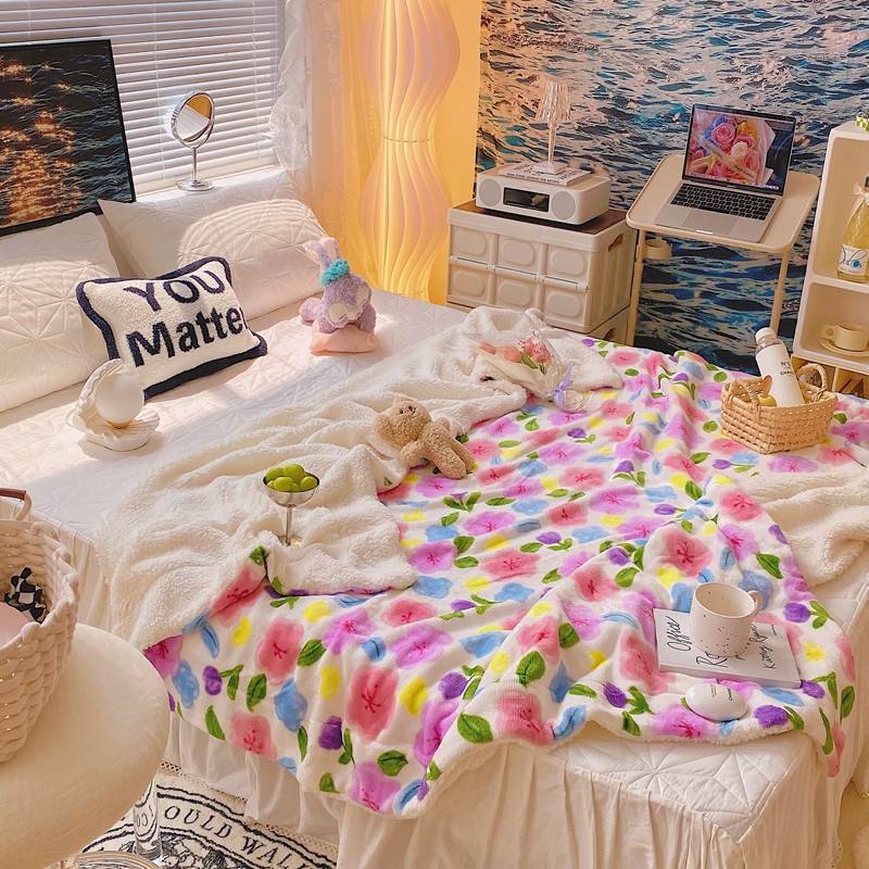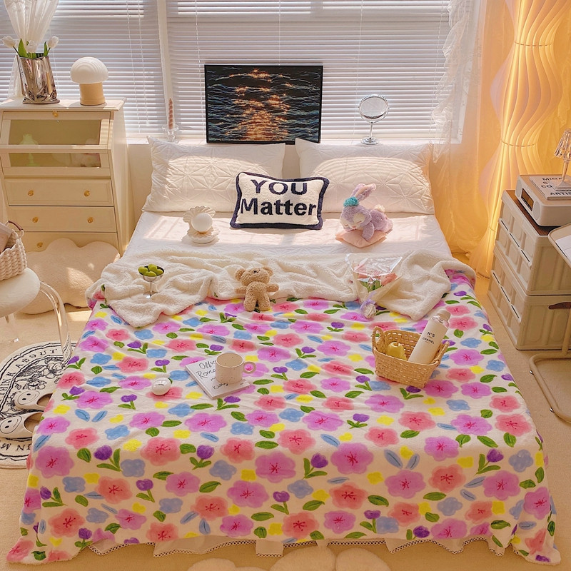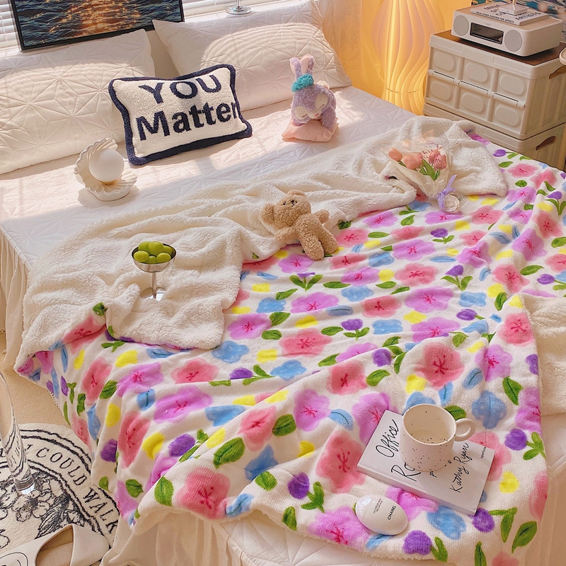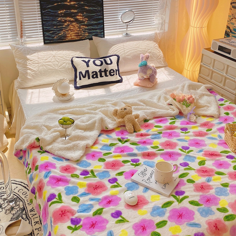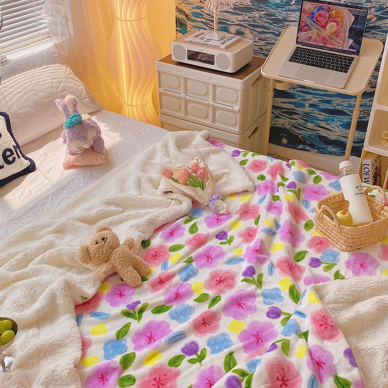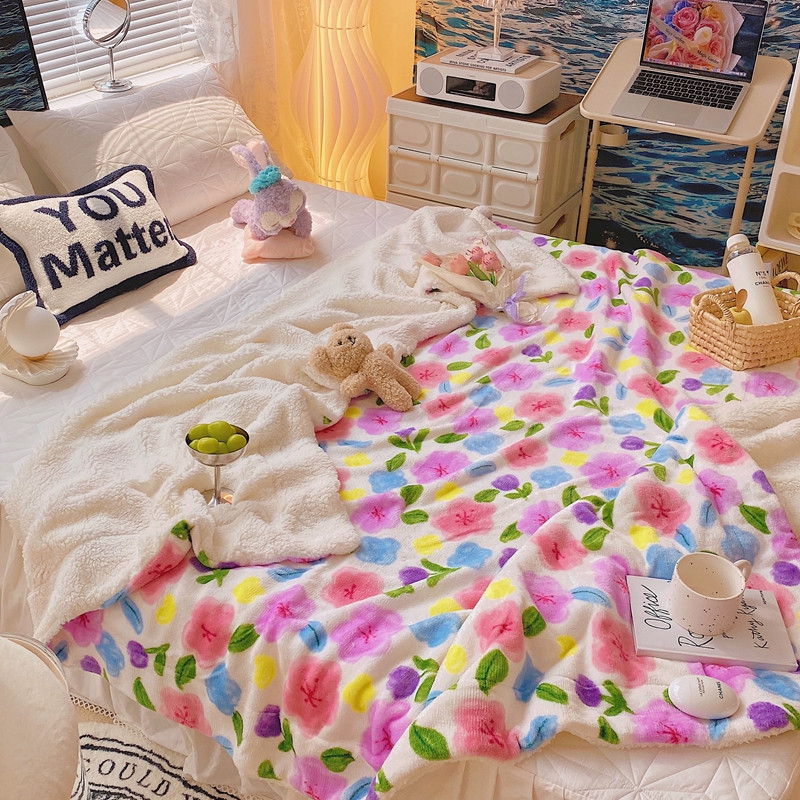 商品名称:顾里 2021新款ins网红少女心暖肤羊羔绒毯实拍图花花世界
