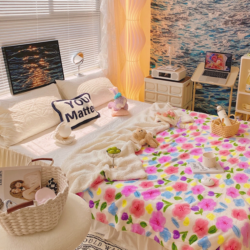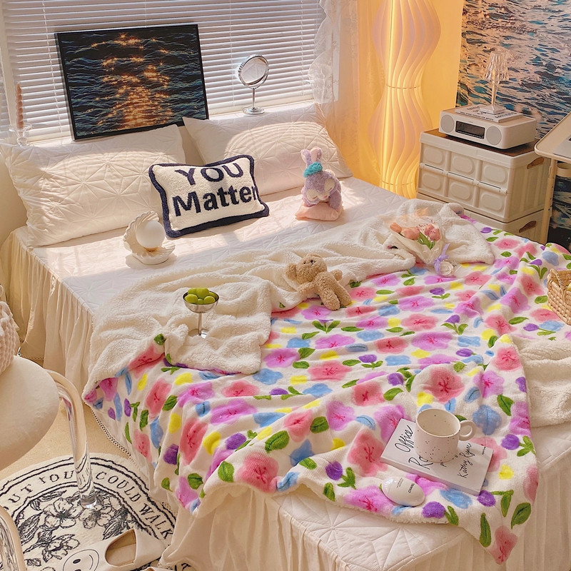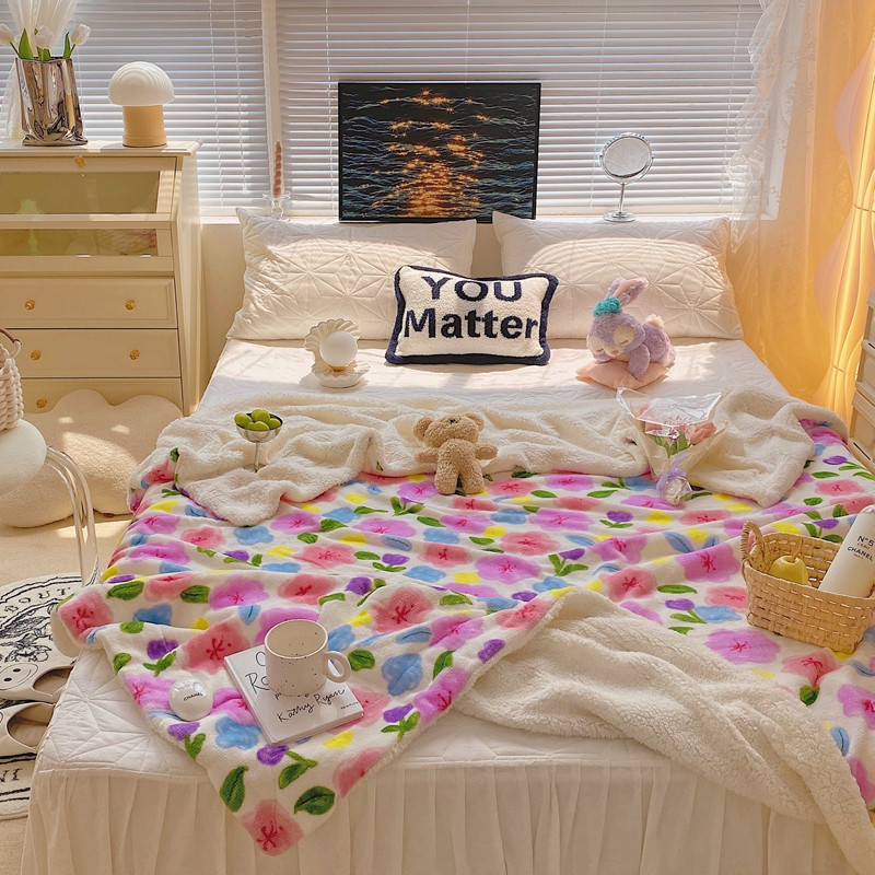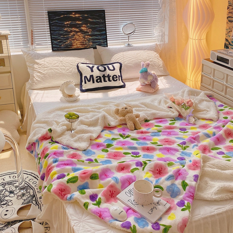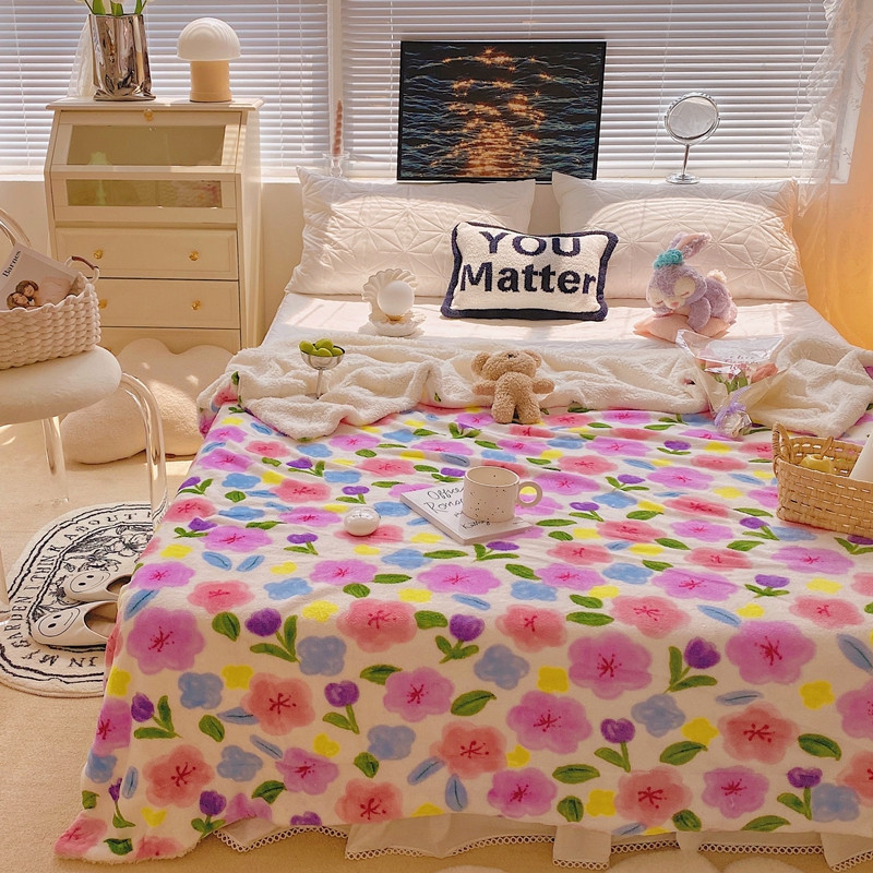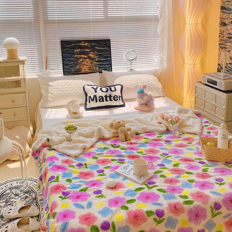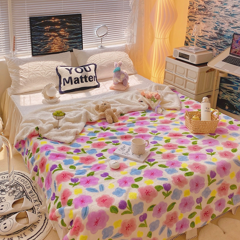 商品名称:顾里 2021新款ins网红少女心暖肤羊羔绒毯实拍图花花世界
