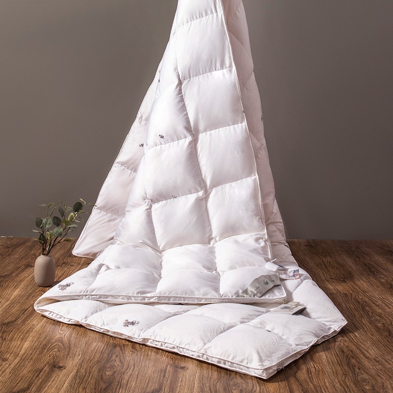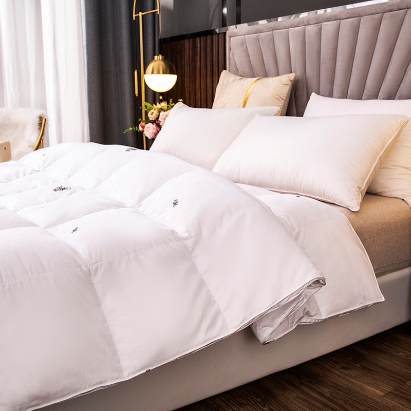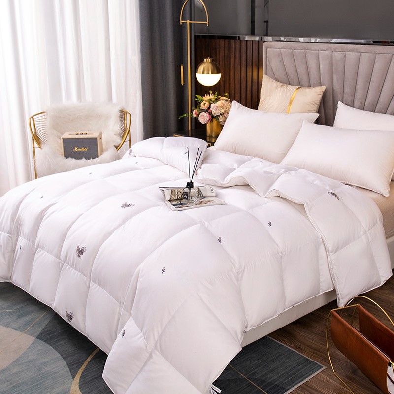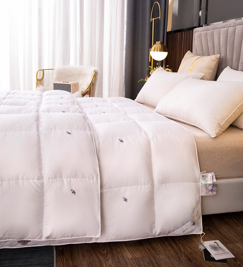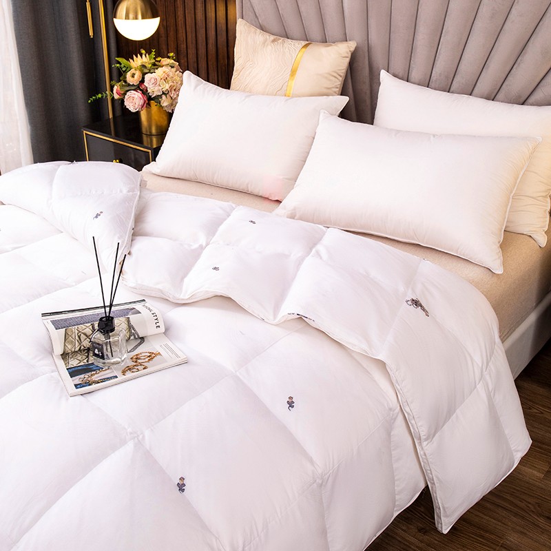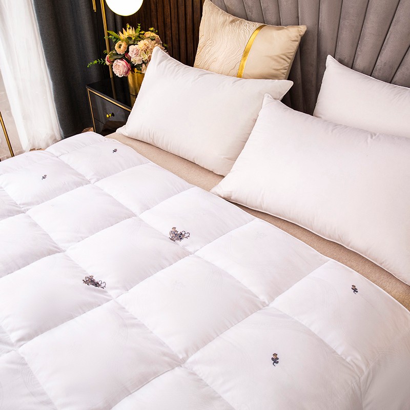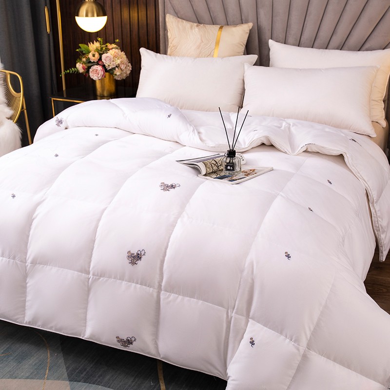 (总)俏企鹅 2025新款绣花款-100s贡缎全棉白鹅绒被,浅灰,粉咖,白色