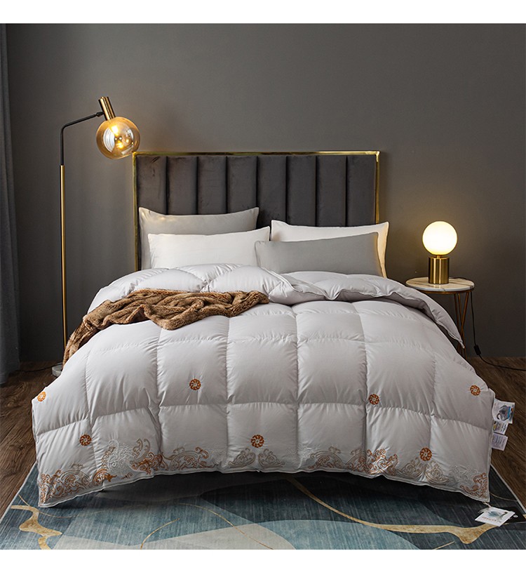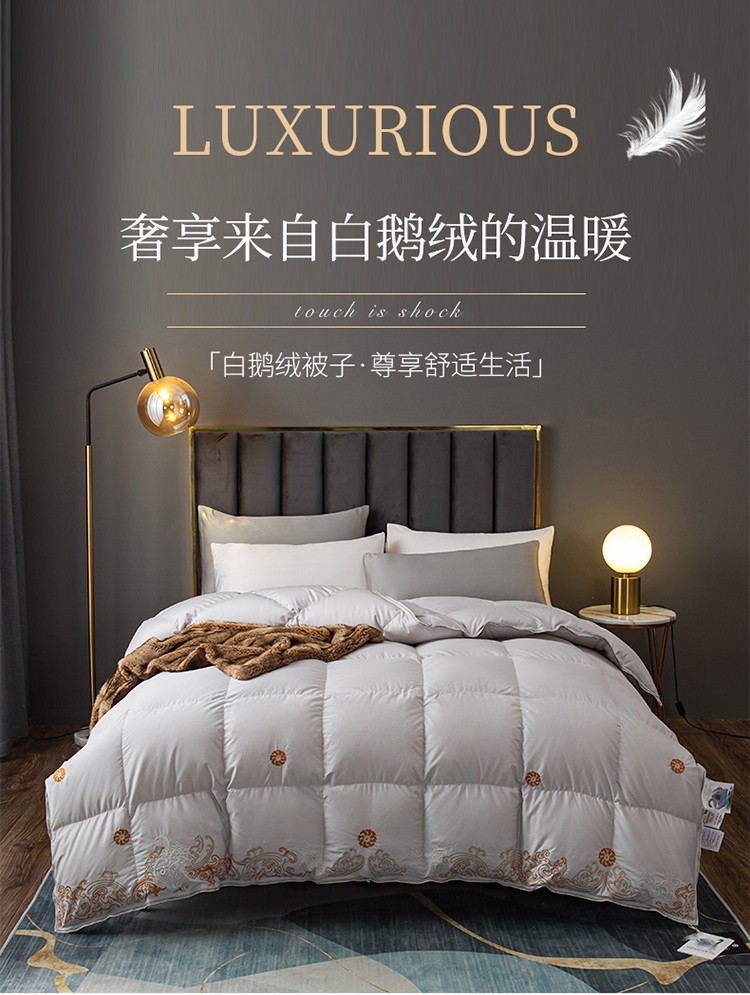 (总)俏企鹅 2025新款绣花款-100s贡缎全棉白鹅绒被,浅灰,粉咖,白色