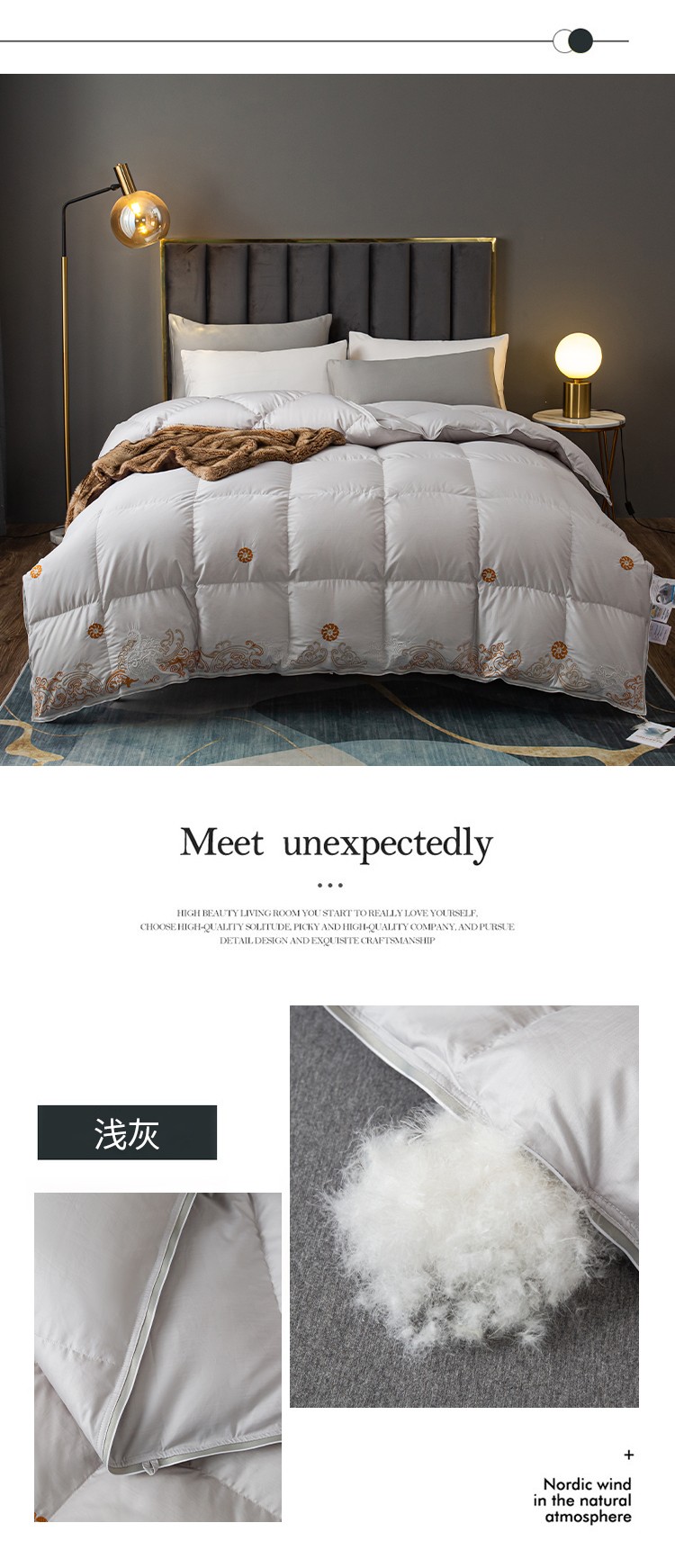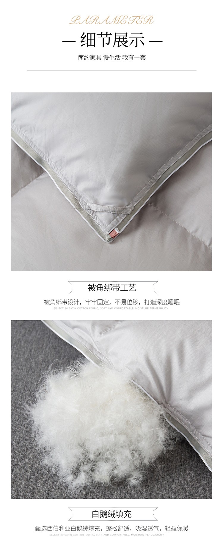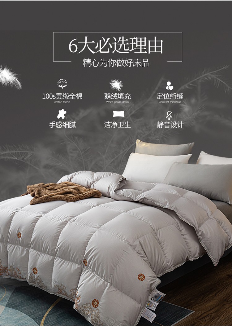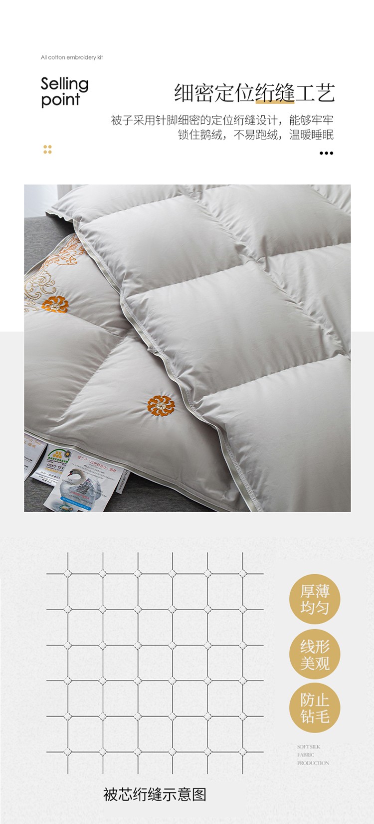商品名称:俏企鹅 2025新款绣花款-100s贡缎全棉白鹅绒被 浅灰