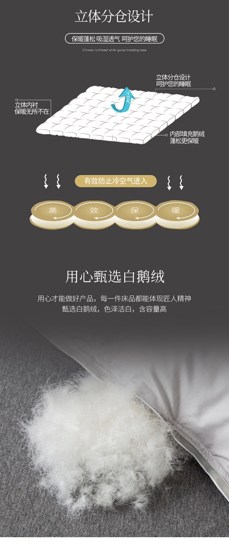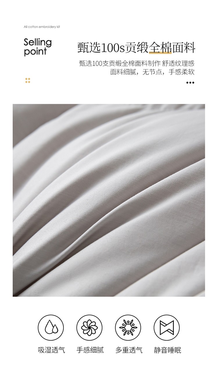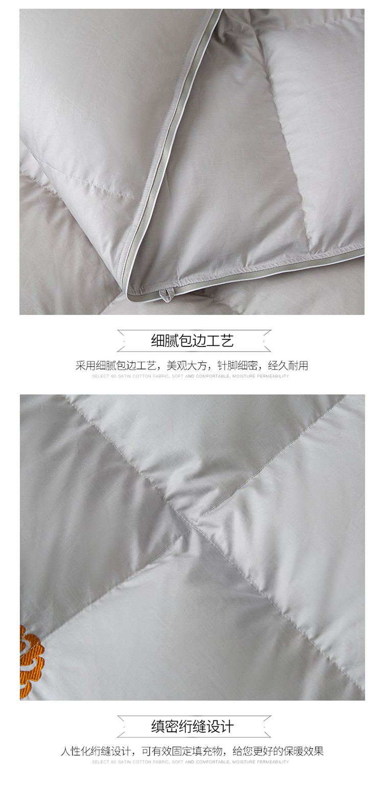 商品名称:俏企鹅 2025新款绣花款-100s贡缎全棉白鹅绒被 浅灰