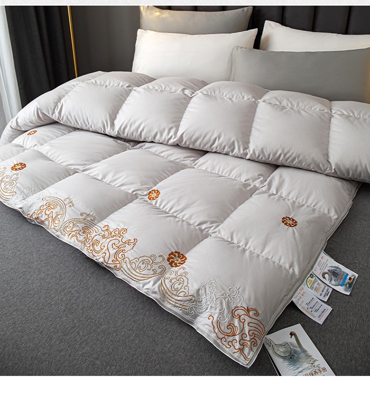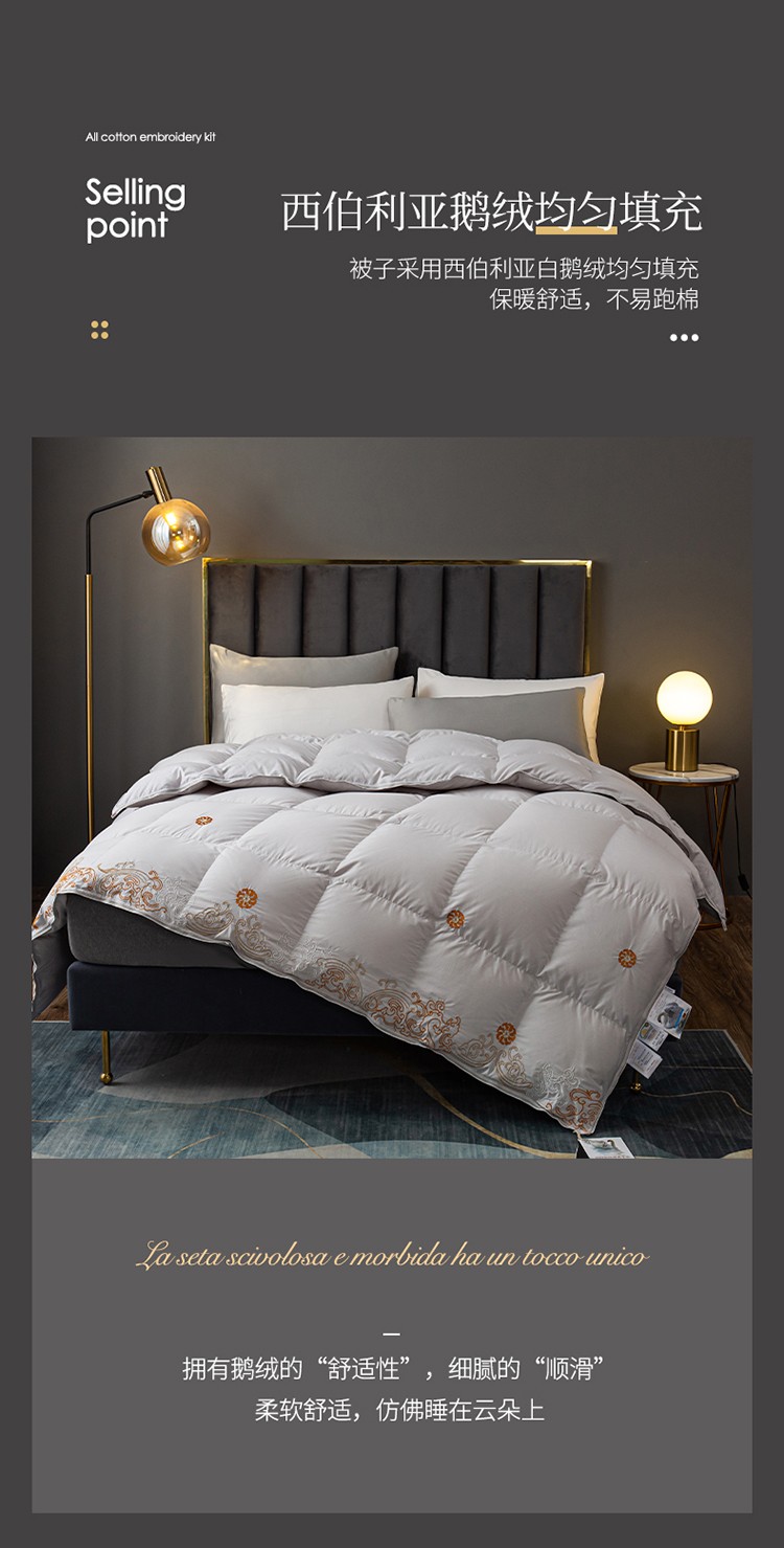 俏企鹅 2025新款绣花款-100s贡缎全棉白鹅绒被 浅灰