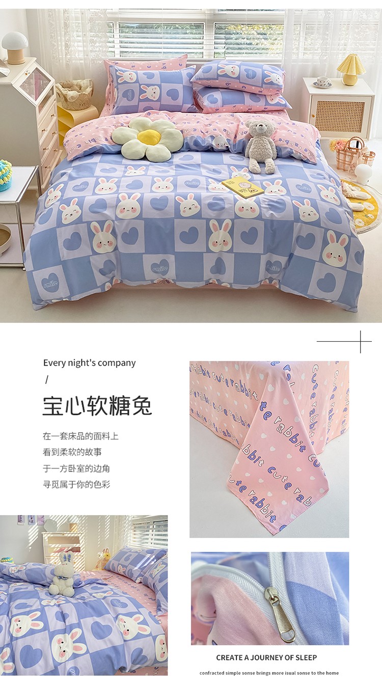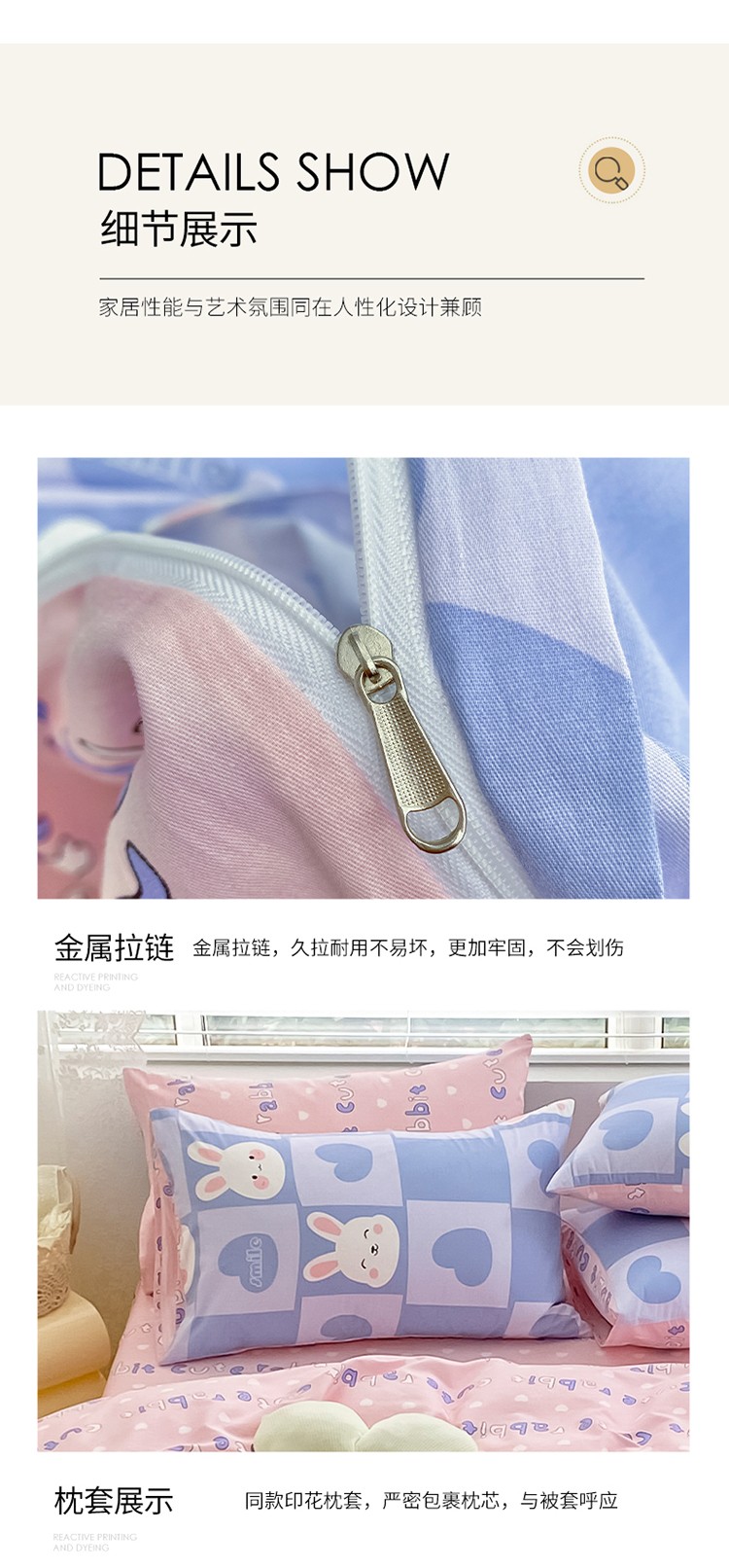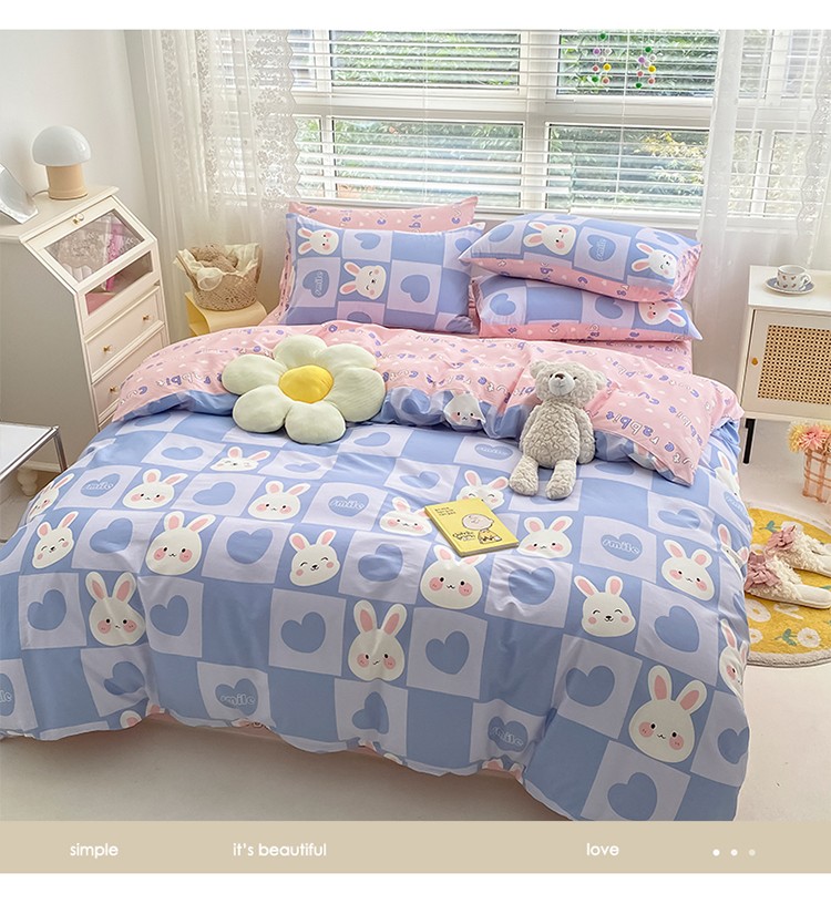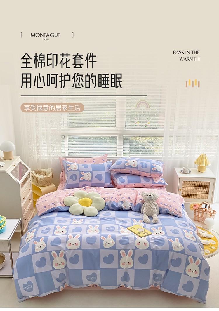 曼之夏 2022新款13372全棉清新印花四件套 宝心软糖兔