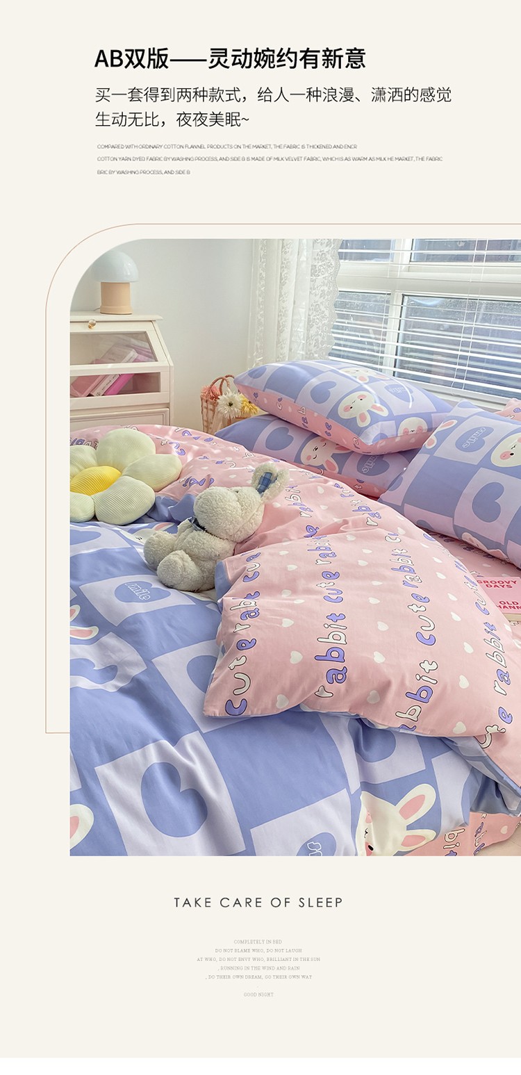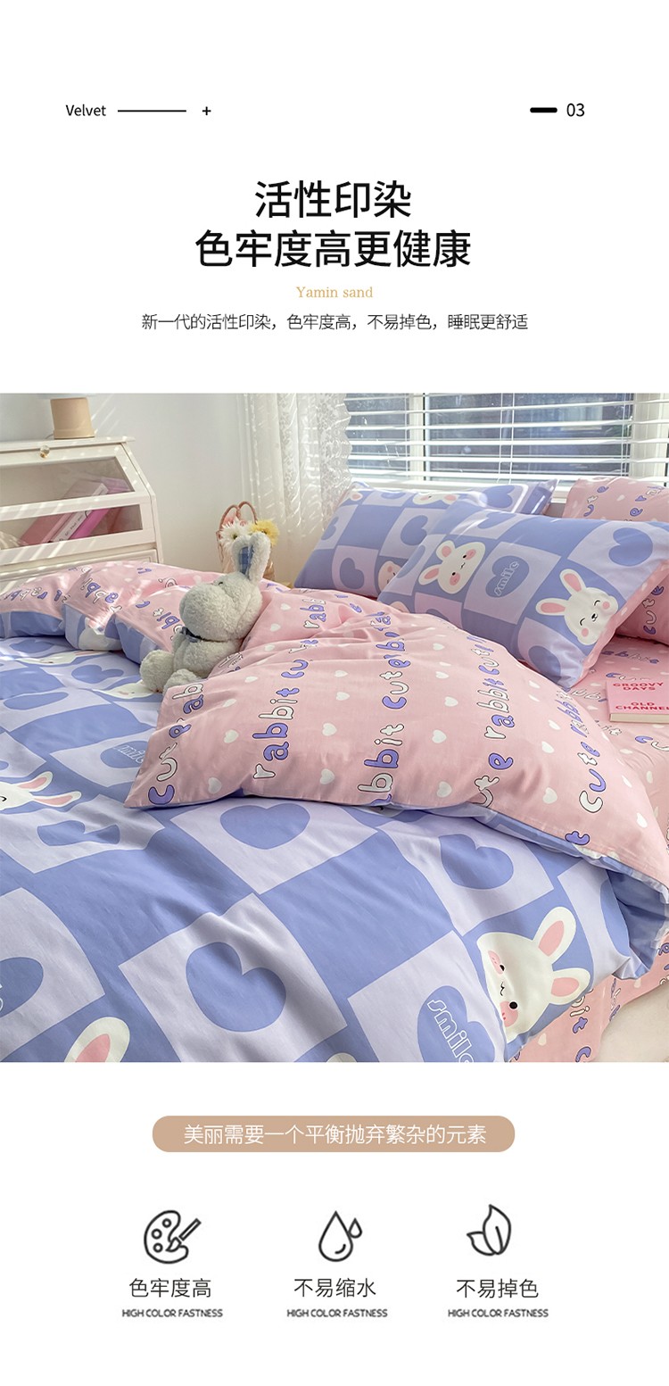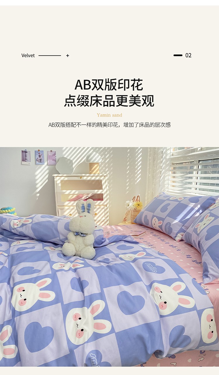 曼之夏 2022新款13372全棉清新印花四件套 宝心软糖兔
