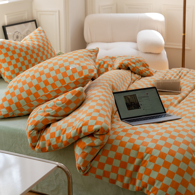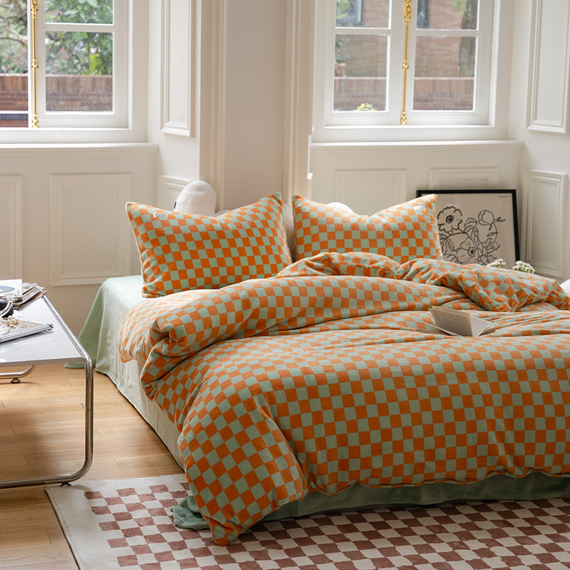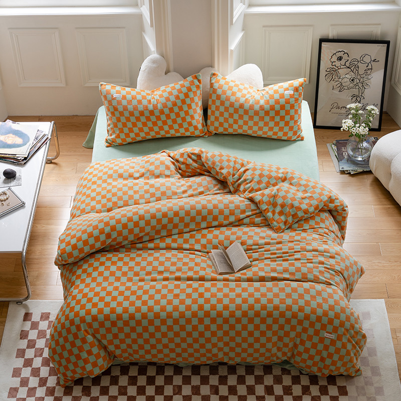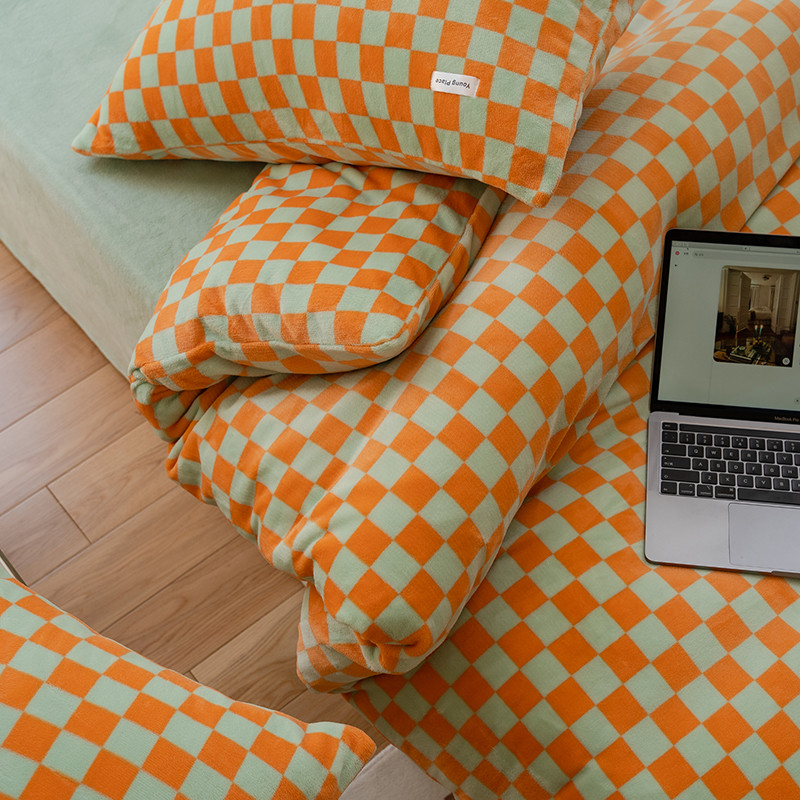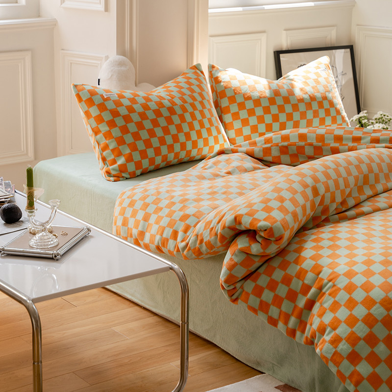 商品名称:洋铭区 2022新款双色棋盘格四件套 庄园橙格
