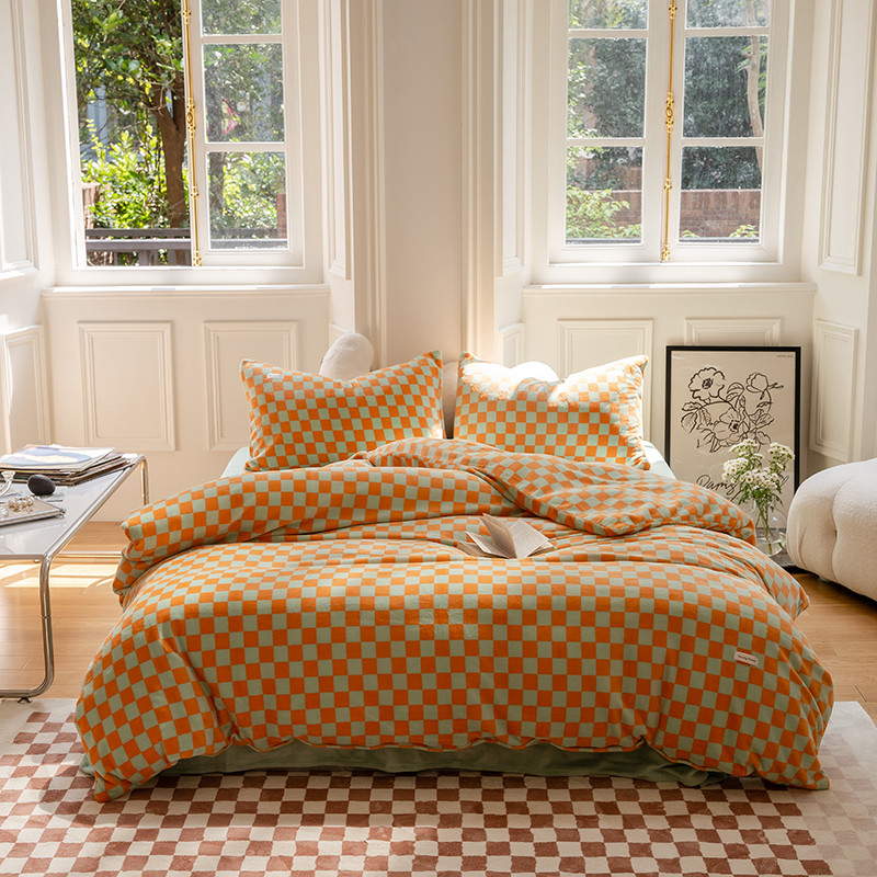 洋铭区 2022新款双色棋盘格四件套 庄园橙格
