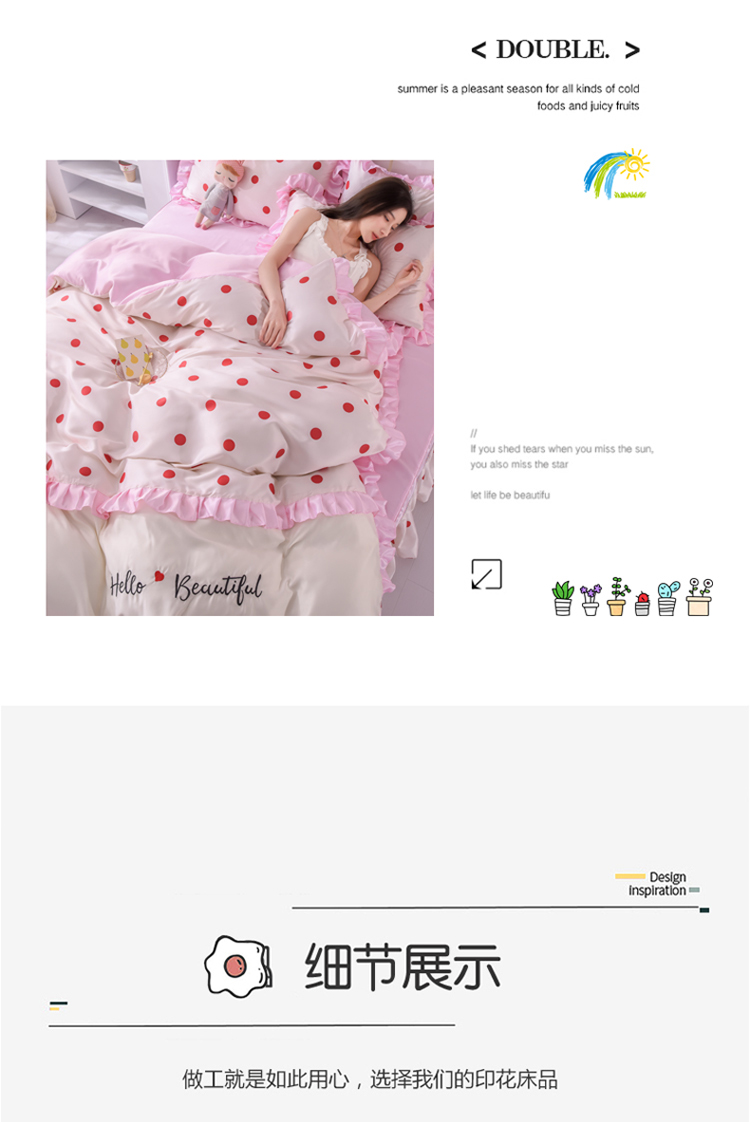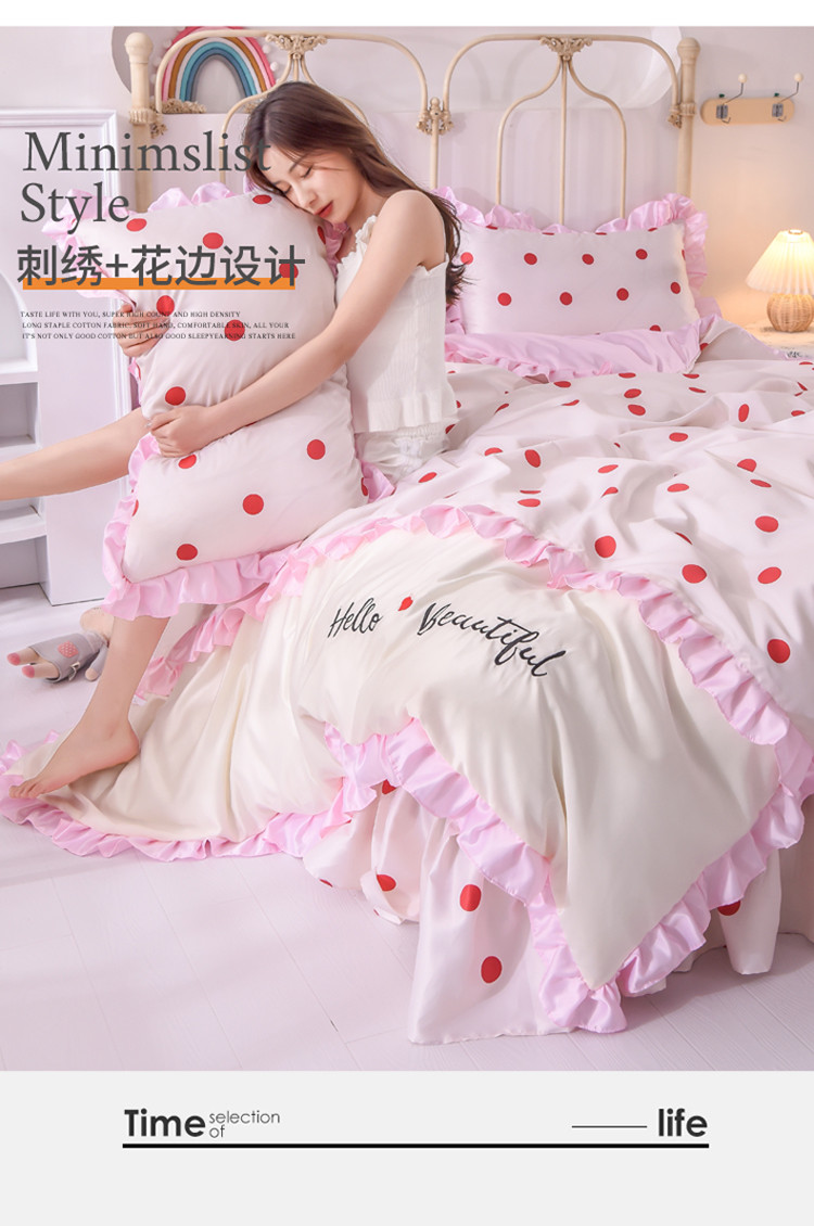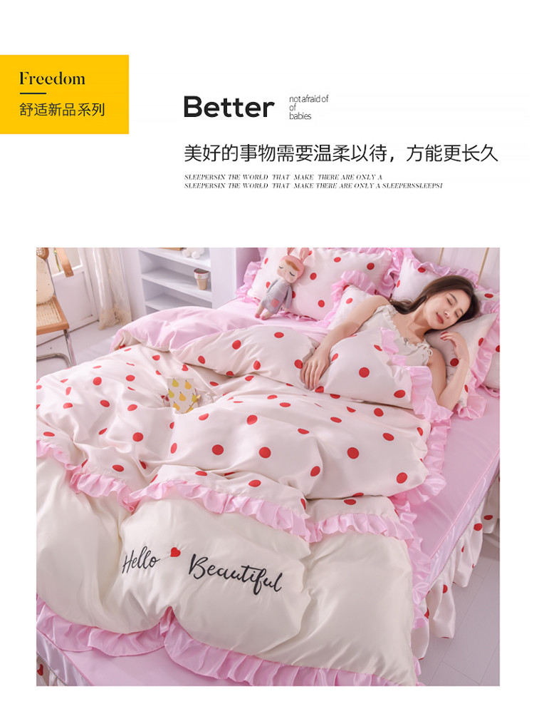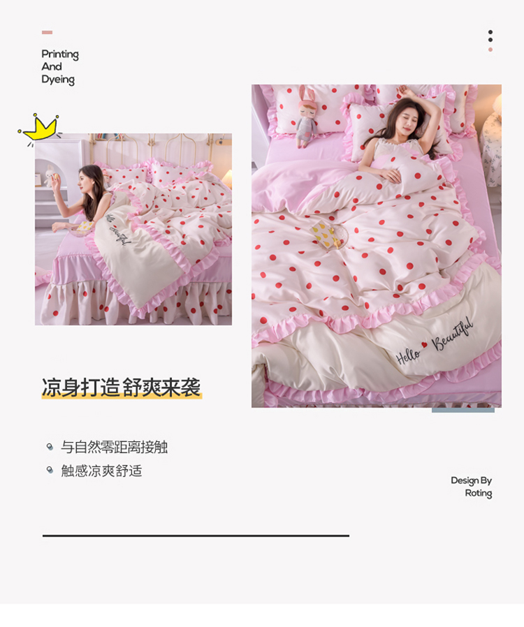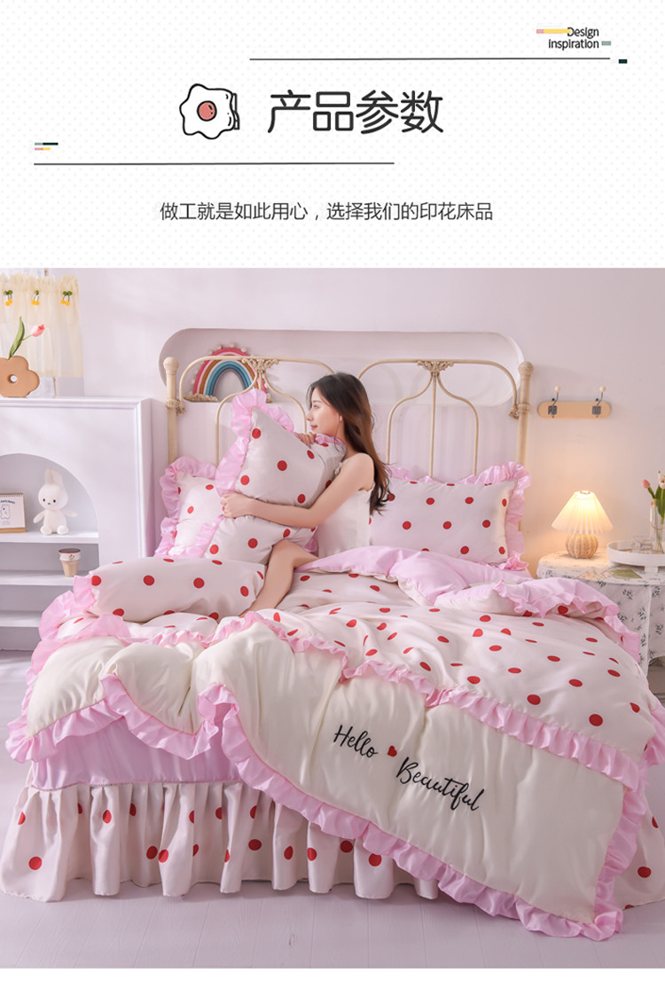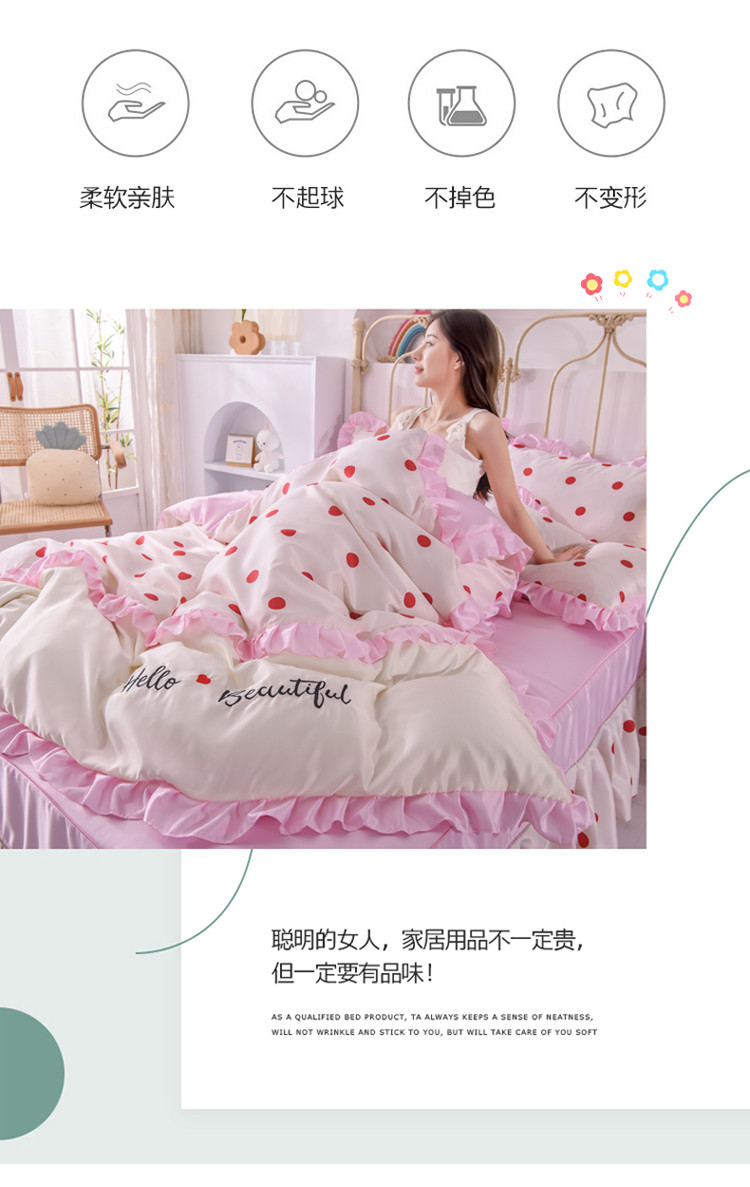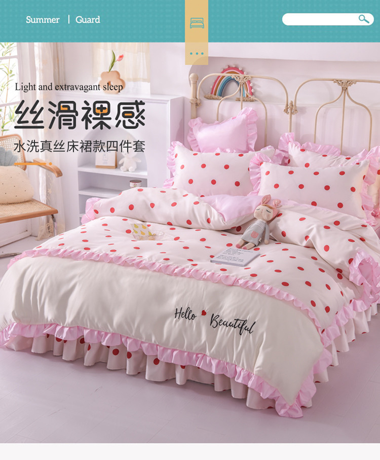 当前位置: 91家纺网 > 商品网购 > 床品套件 > 四件套 > 水洗真丝四件套 > 欧冠 2022新款水洗真丝床裙款刺绣印花四件套 小圆点