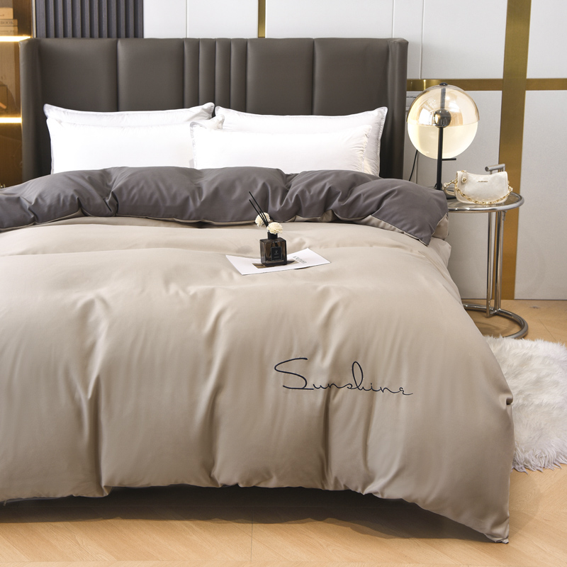 七仙女家纺 2025新款亲肤磨毛绣花款单被套直播供货 奶茶+浅灰
