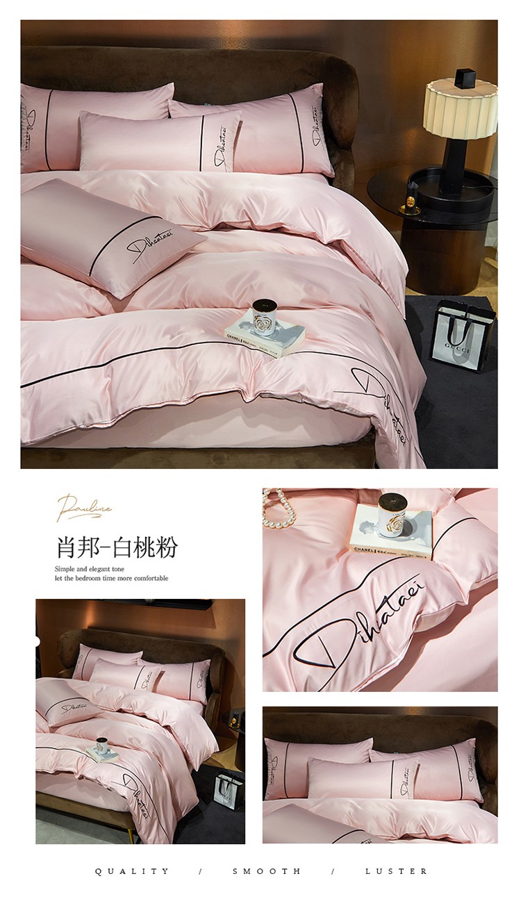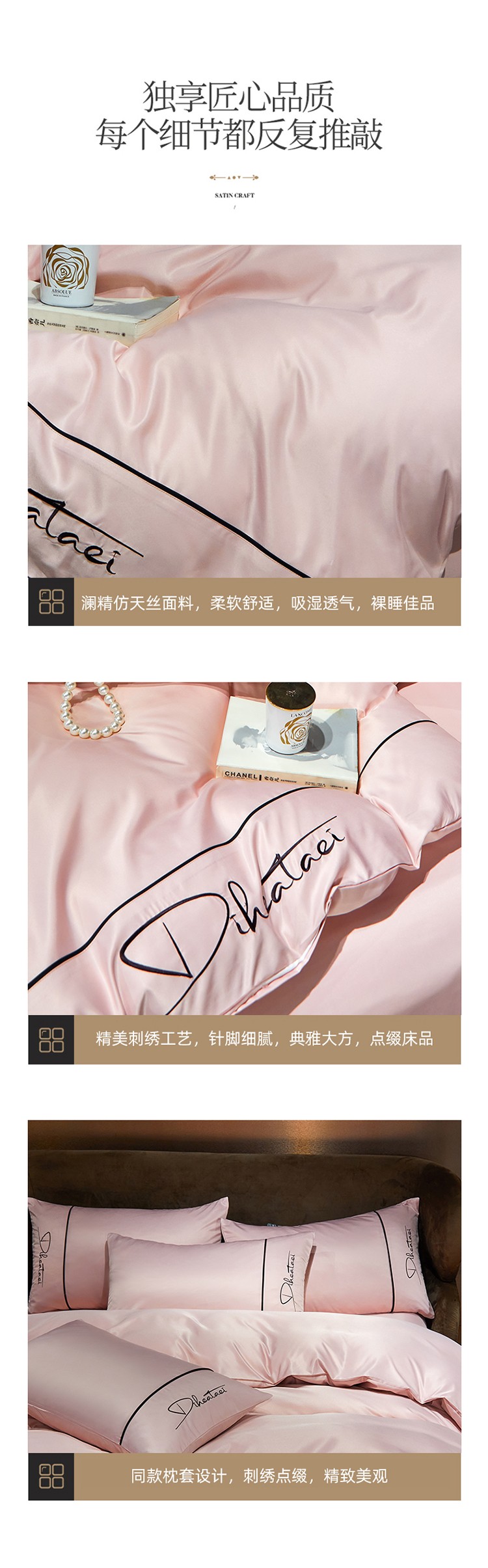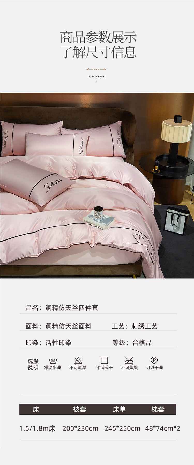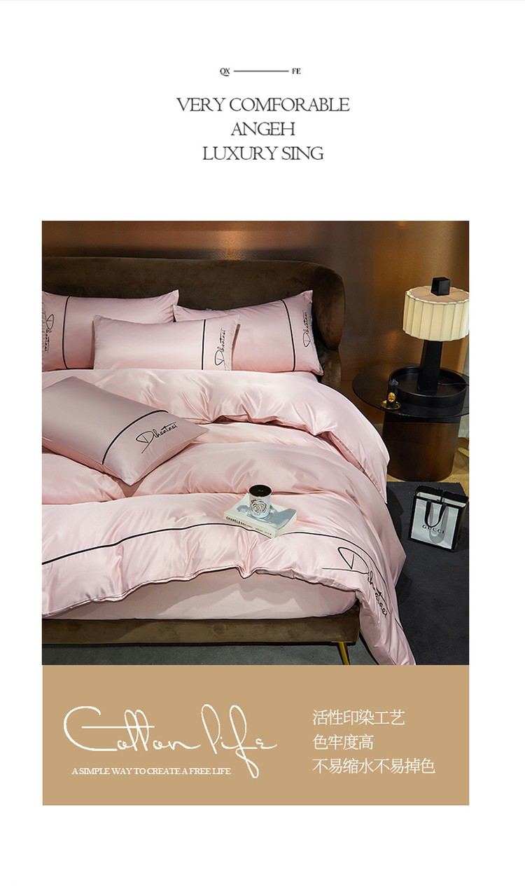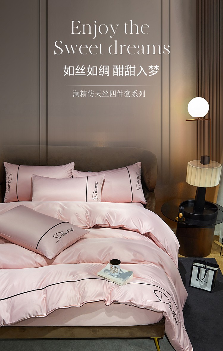 (总)凡客家居 2024新款高克重牛奶绒绣花拼角四件套,海洋蓝,奶油咖,深卡其,樱花粉