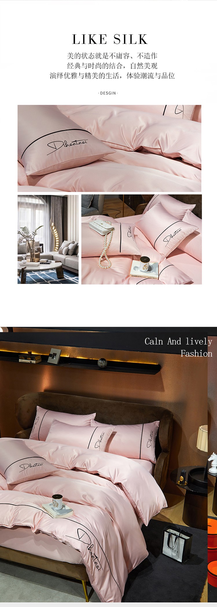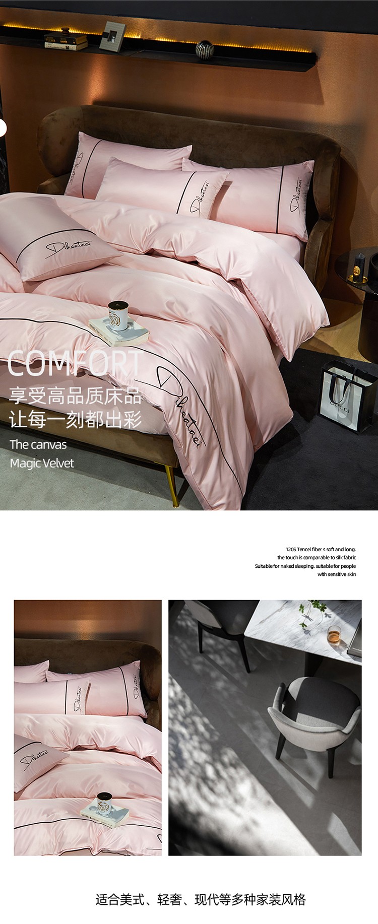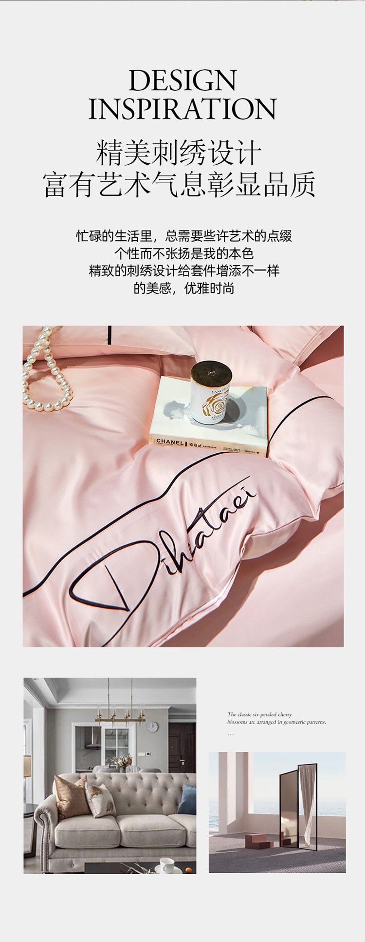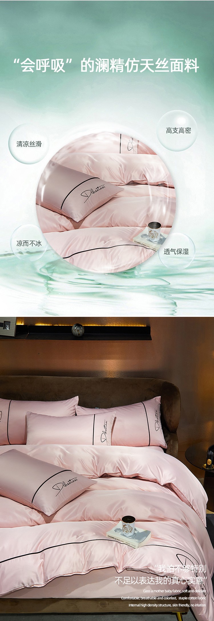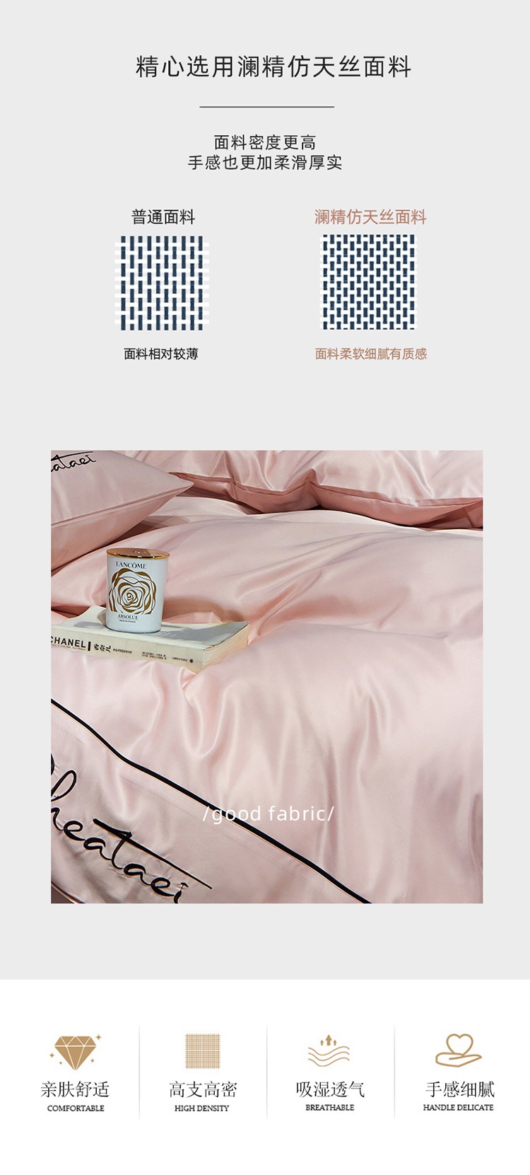 (总)凡客家居 2024新款高克重牛奶绒绣花拼角四件套,海洋蓝,奶油咖,深卡其,樱花粉