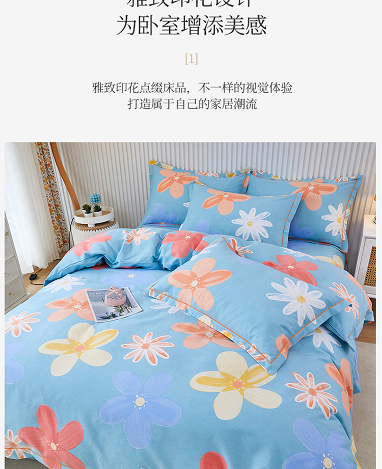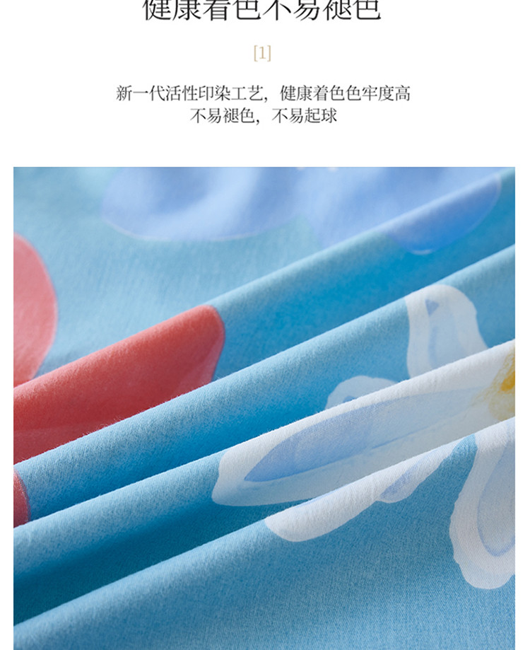 杜先生 2023新款全棉加厚磨毛系列四件套 花语时光-蓝