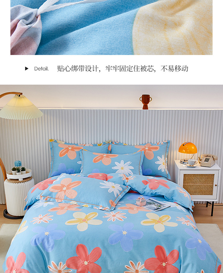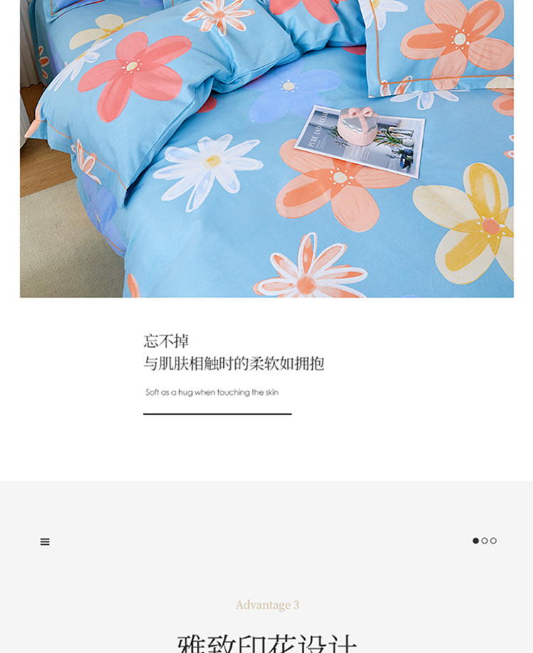商品名称:杜先生 2023新款全棉加厚磨毛系列四件套 花语时光-蓝