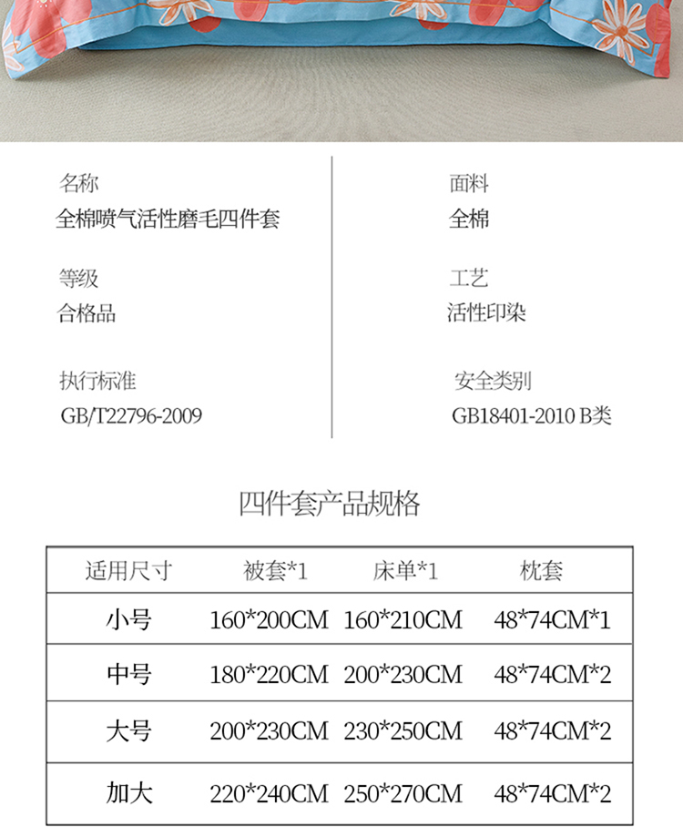 大号1.8m床单款四件套