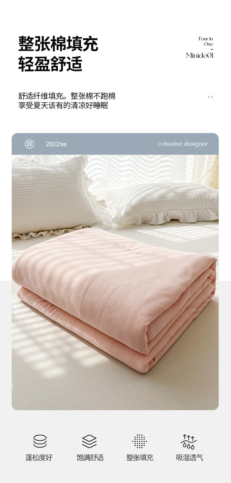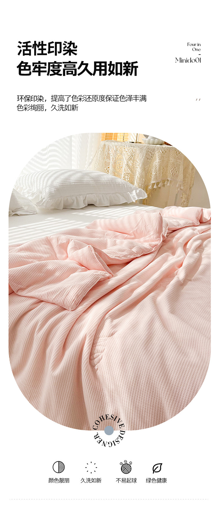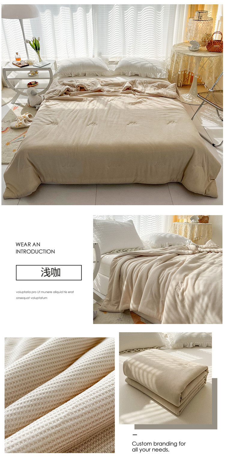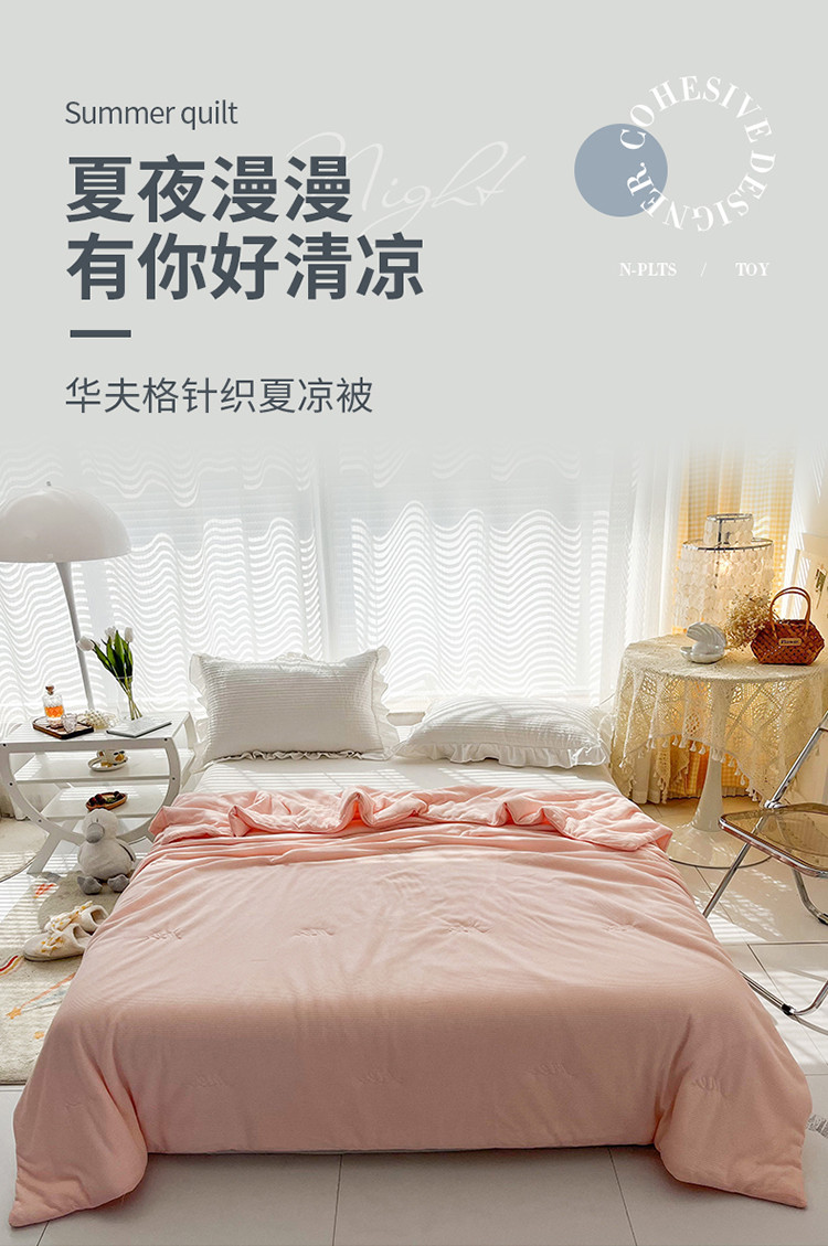 (总)珺柔家纺 2023新款针织华夫格夏被,白色,粉玉,金色,浅咖,水绿,雾霾蓝
